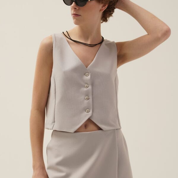 Musculosa con escote cavado y detalle de cut out en la espalda confeccionada en satén