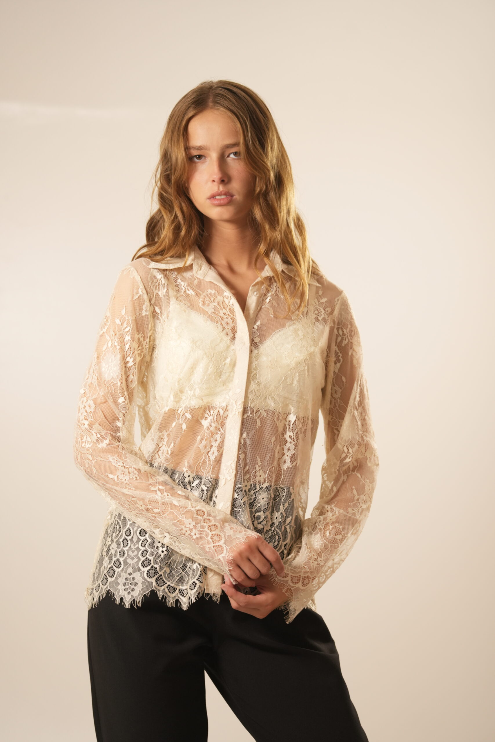 Camisa mangas largas confeccionada en encaje