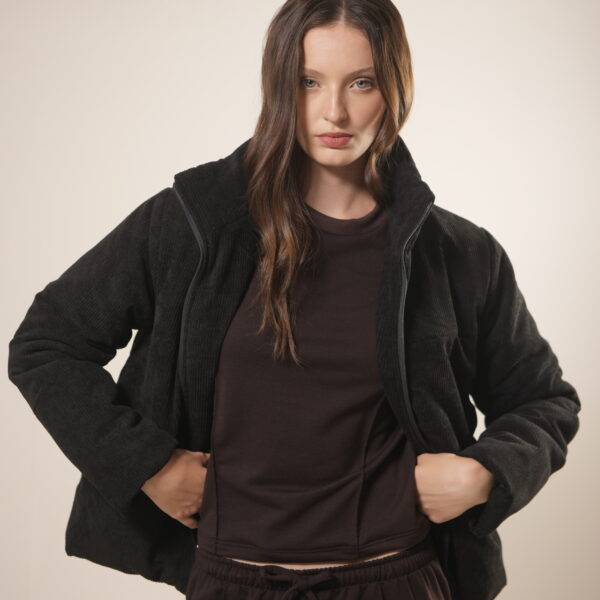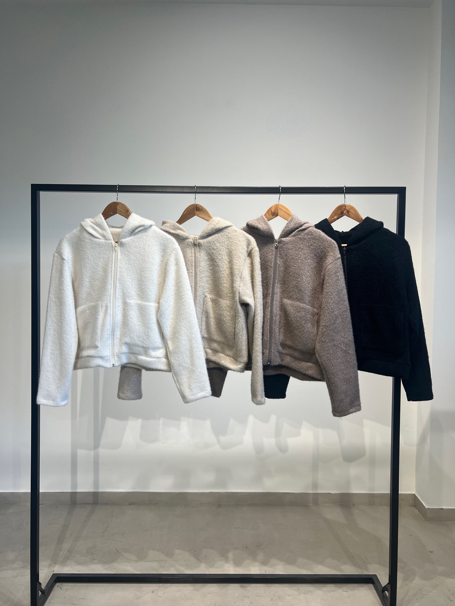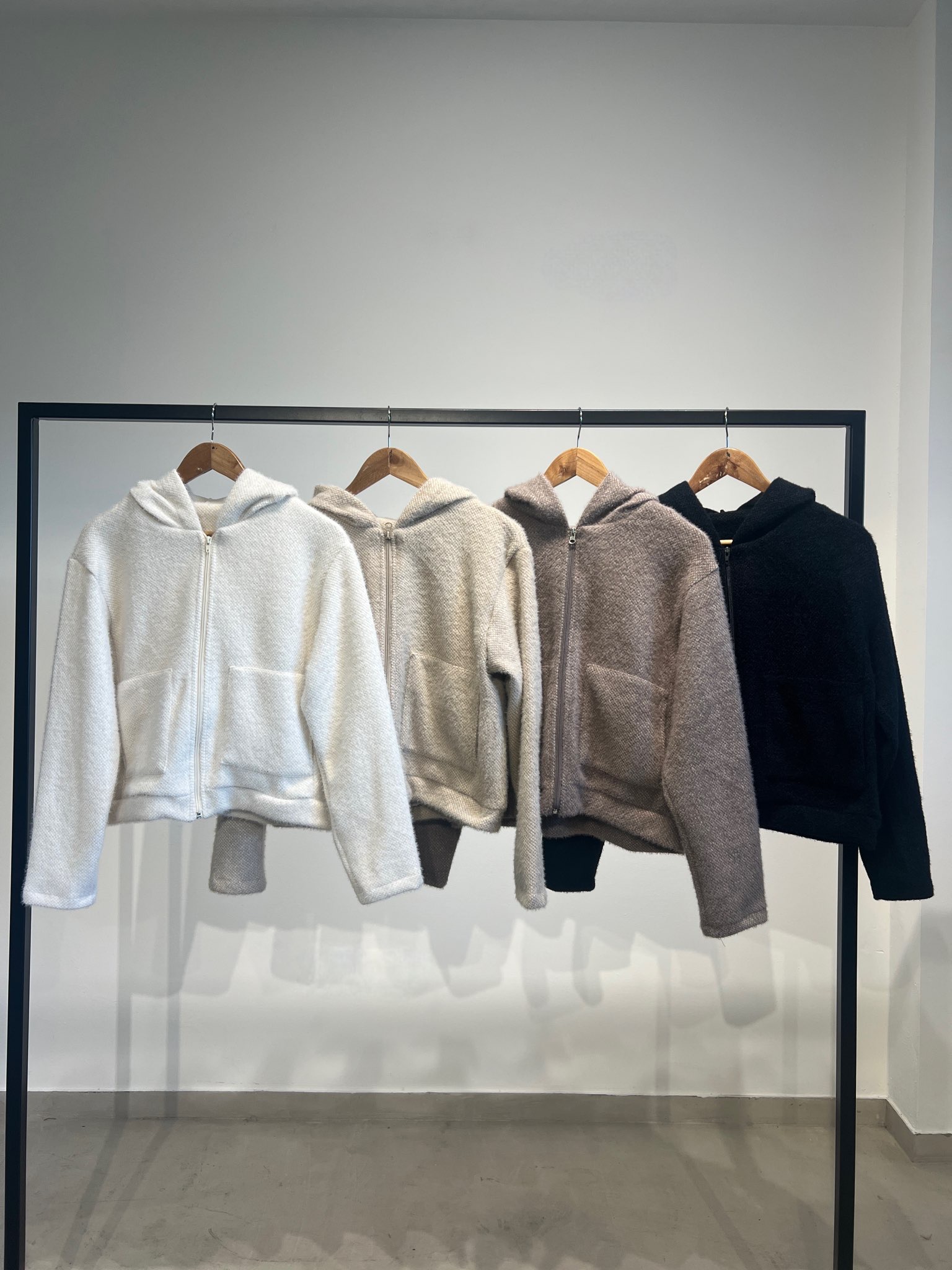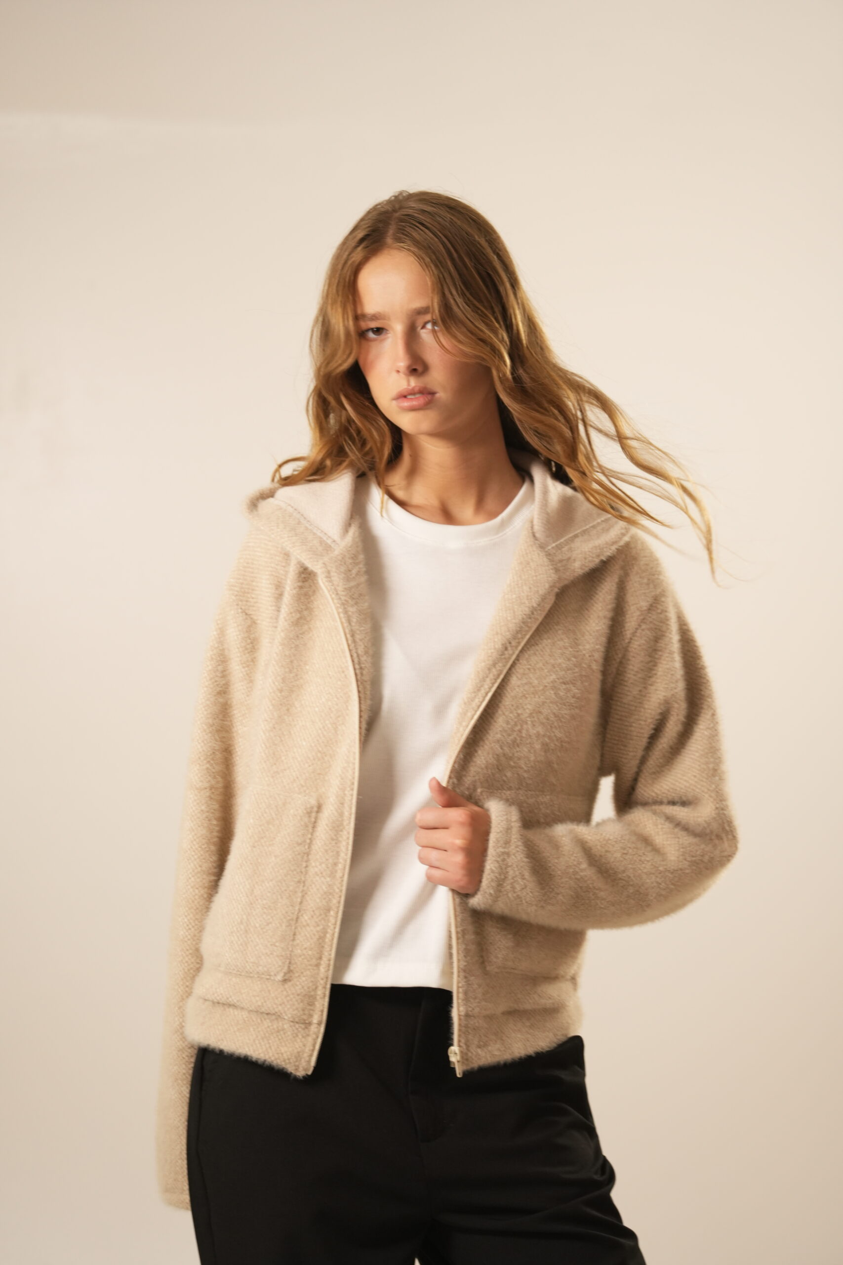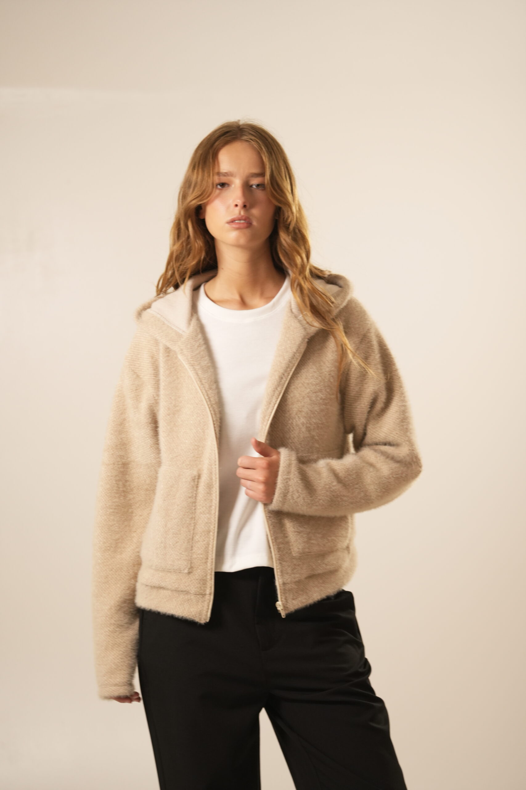 Campera con cierre, capucha y bolsillos