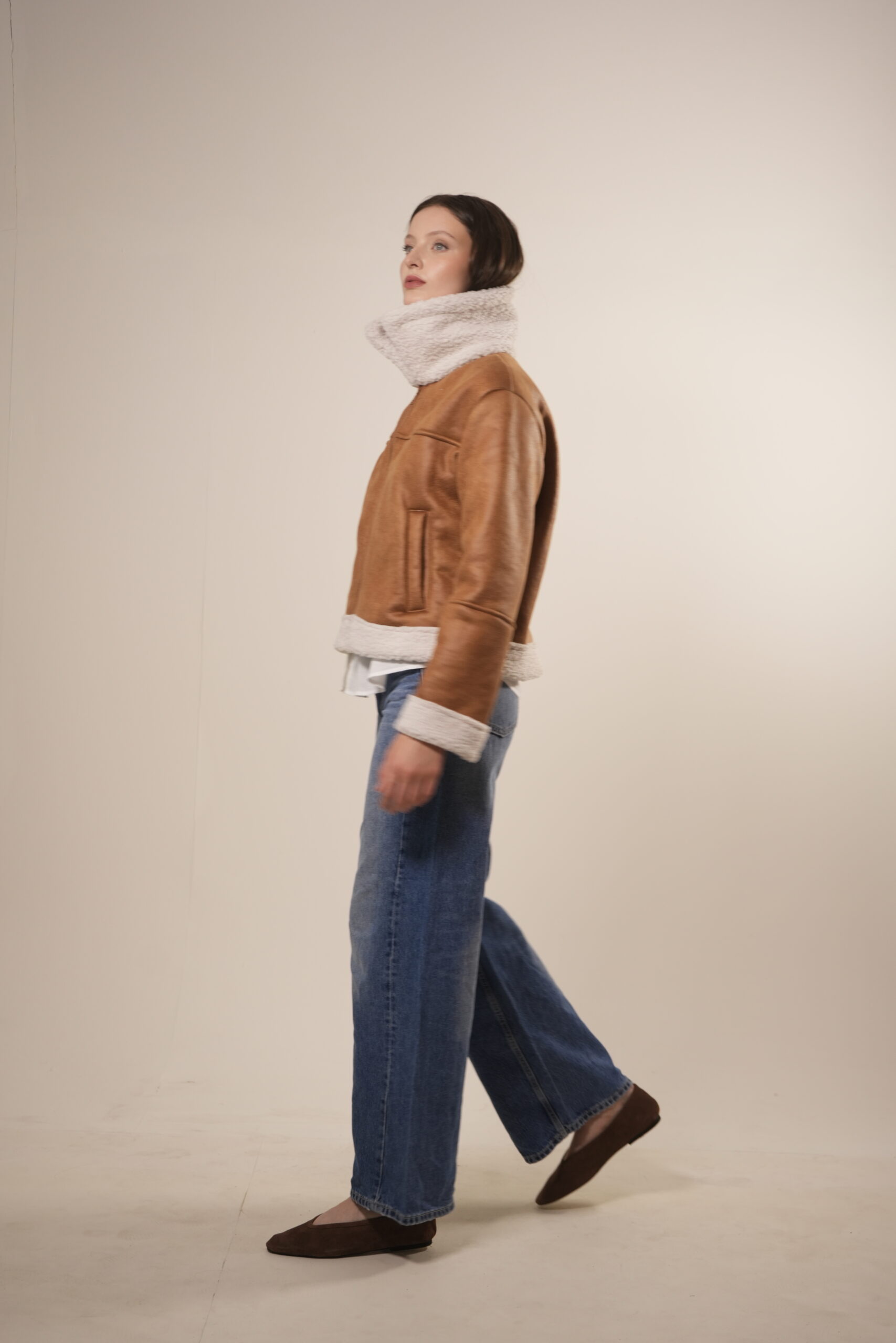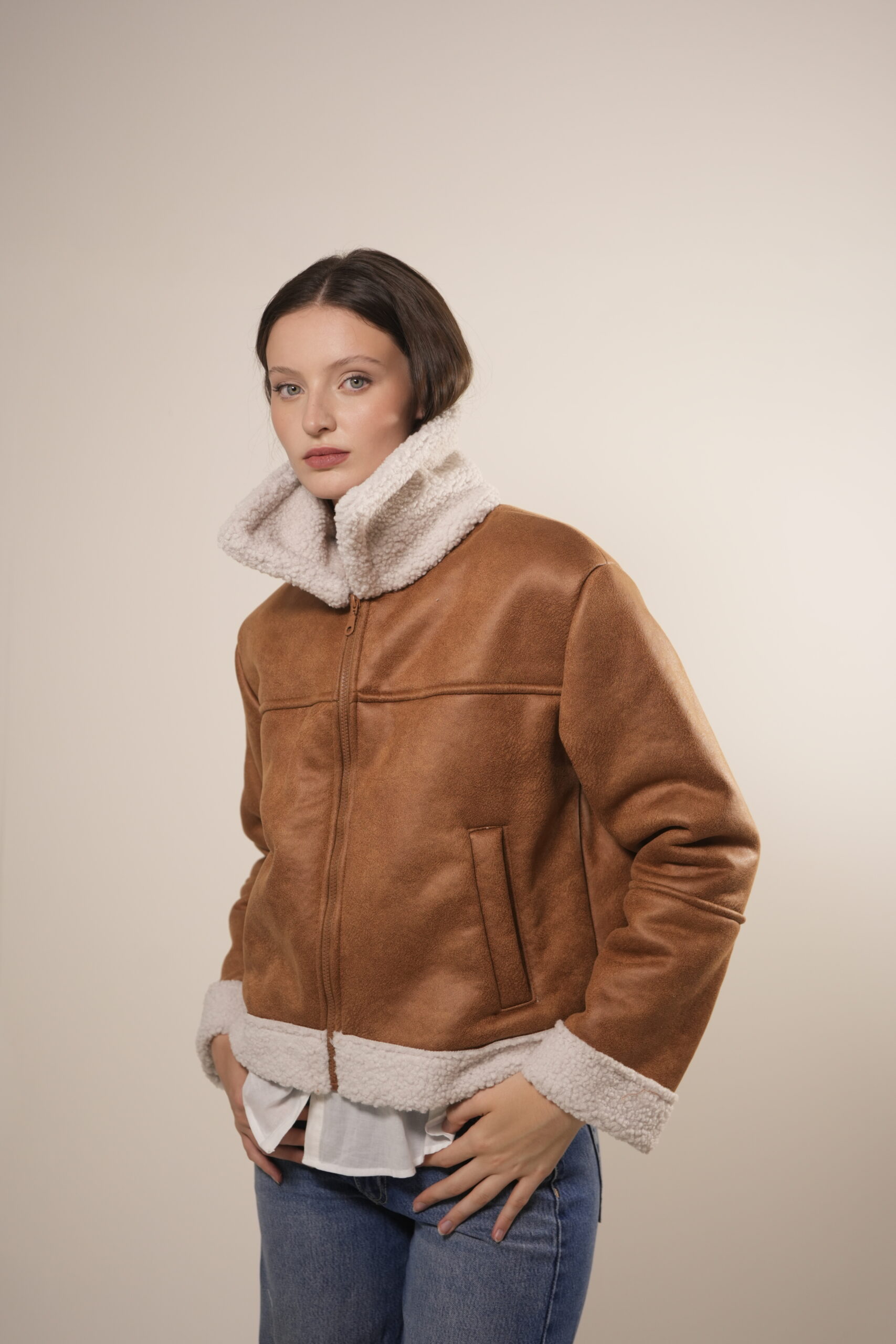 Campera gamulan confeccionada textil gamuzado con corderito