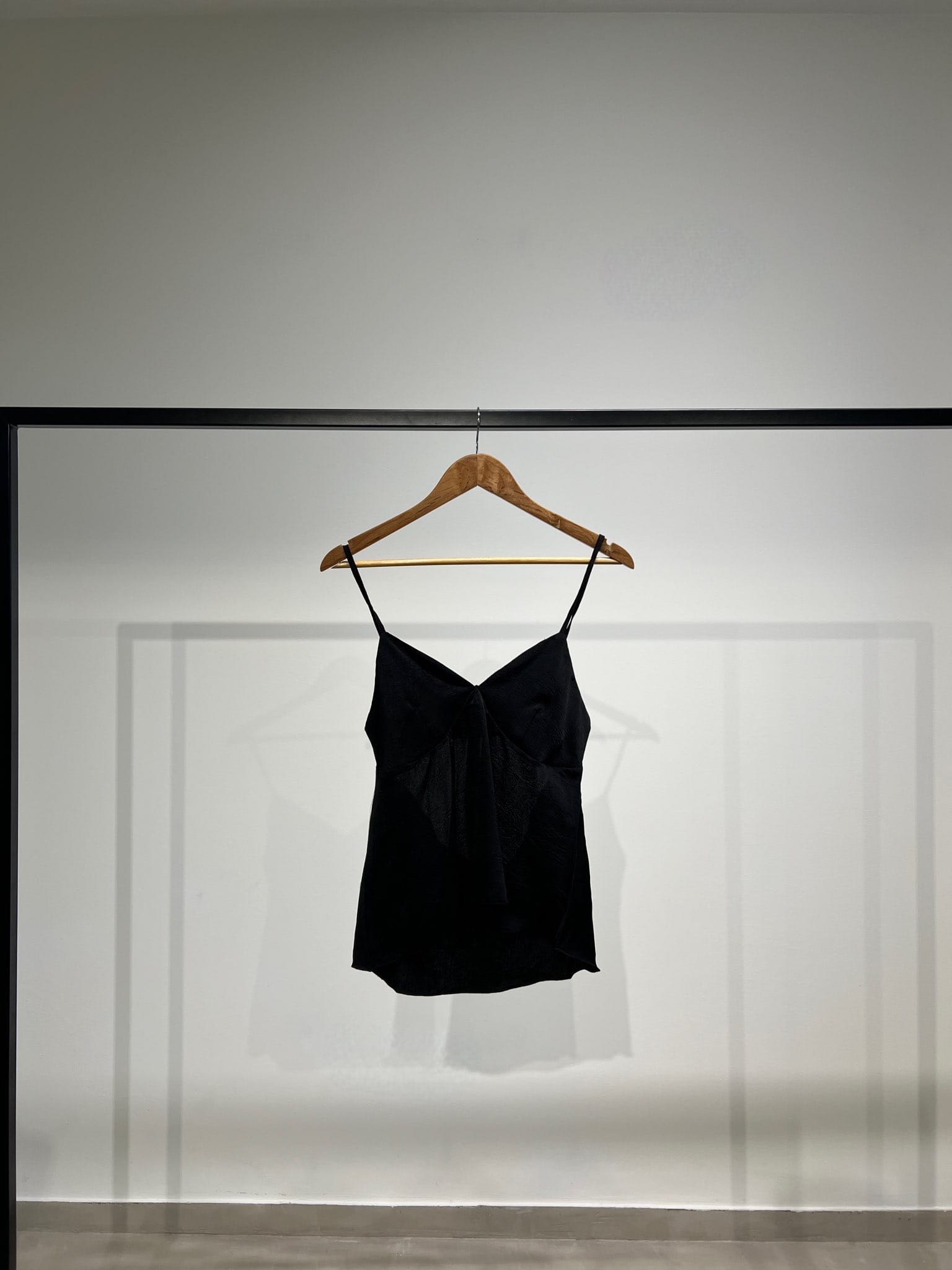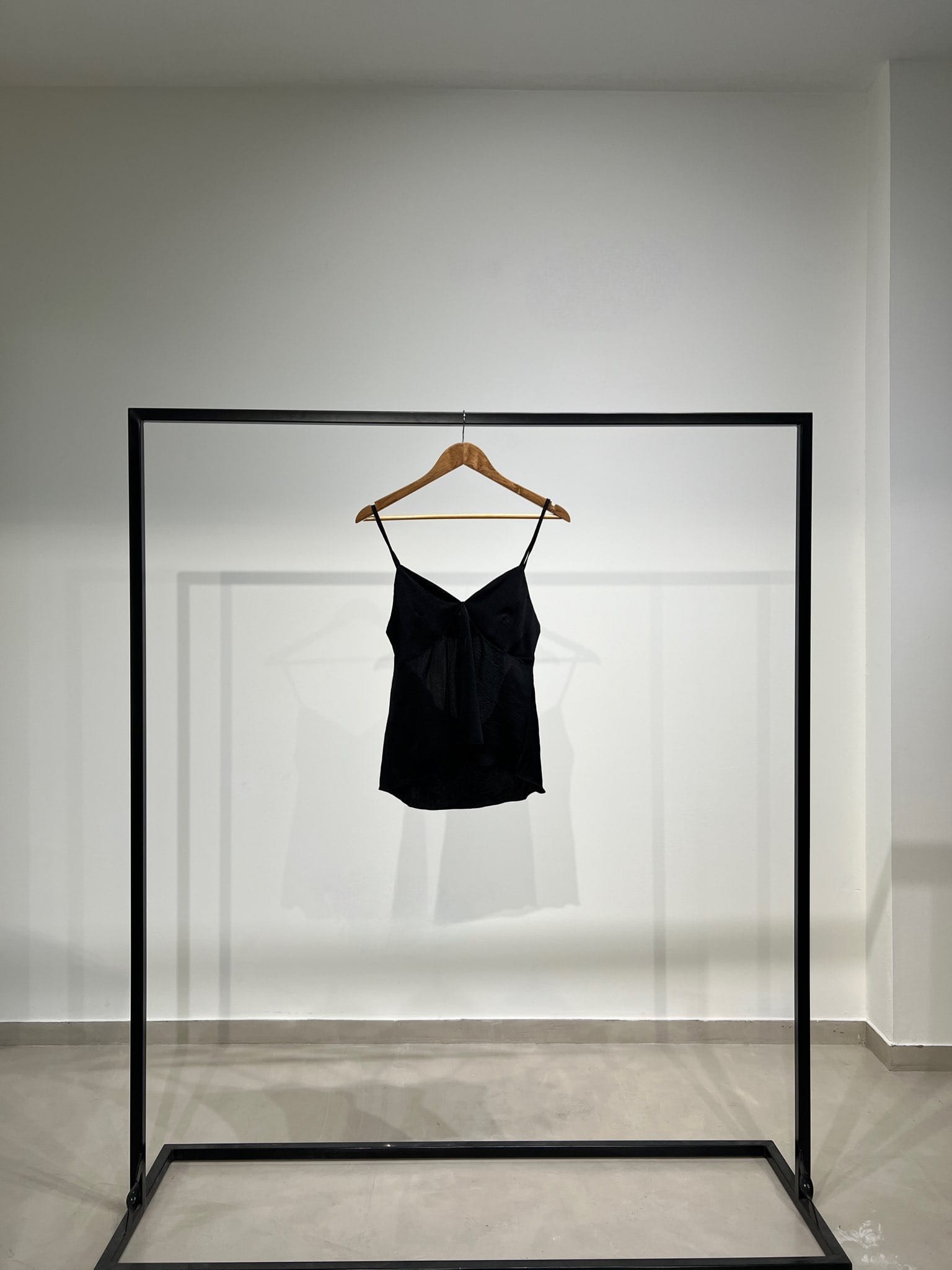 Musculosa con escote cavado y detalle de cut out en la espalda confeccionada en satén