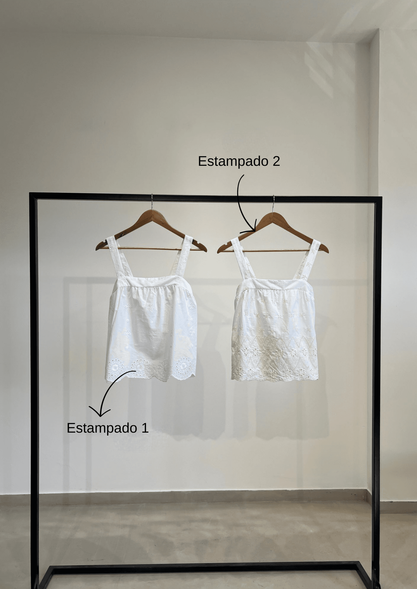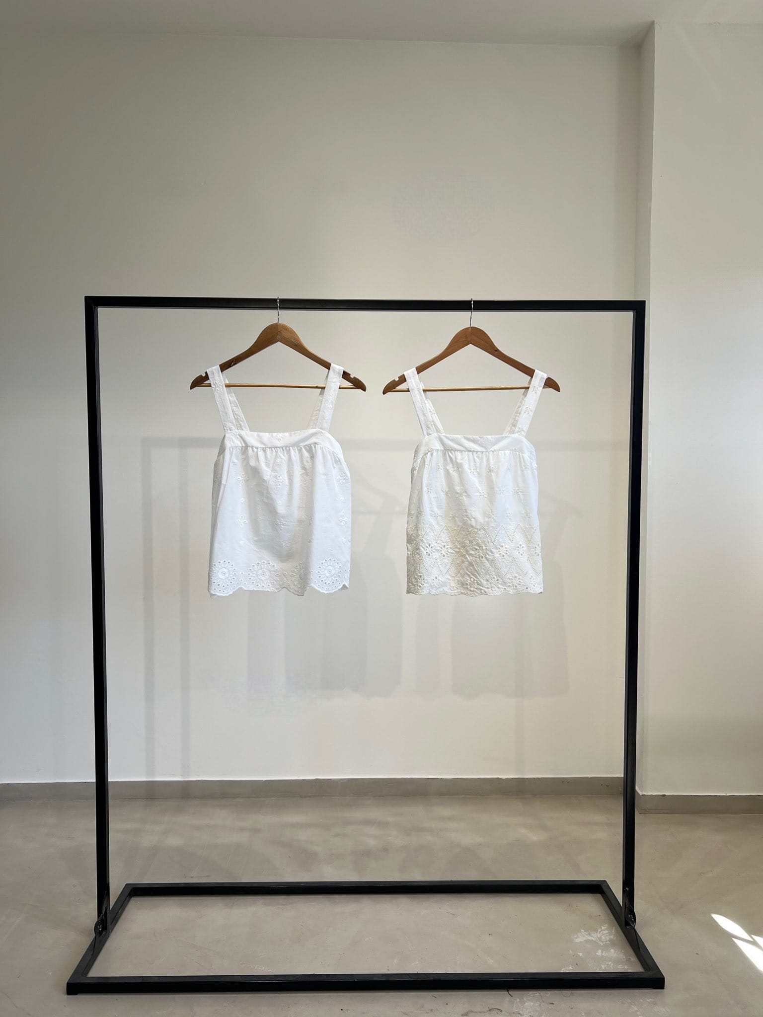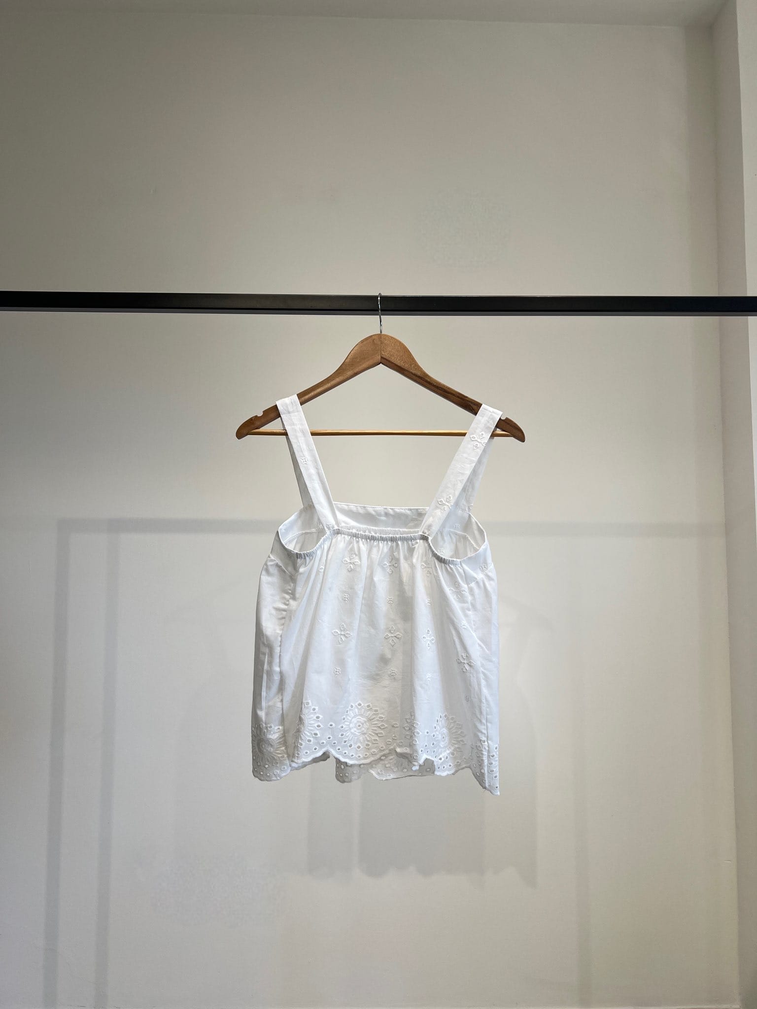 Musculosa de breteles finos y escote recto confeccionada en broderie