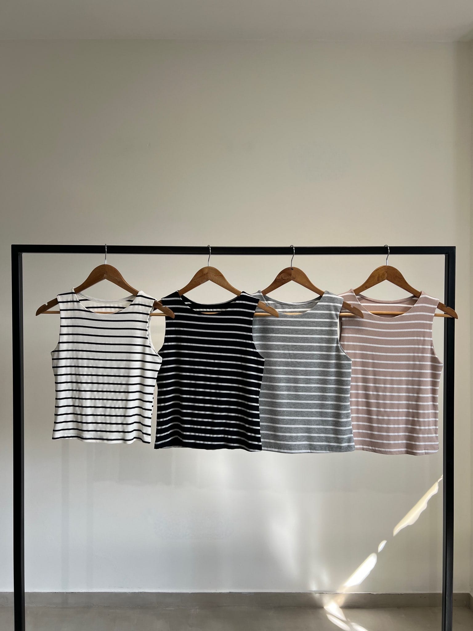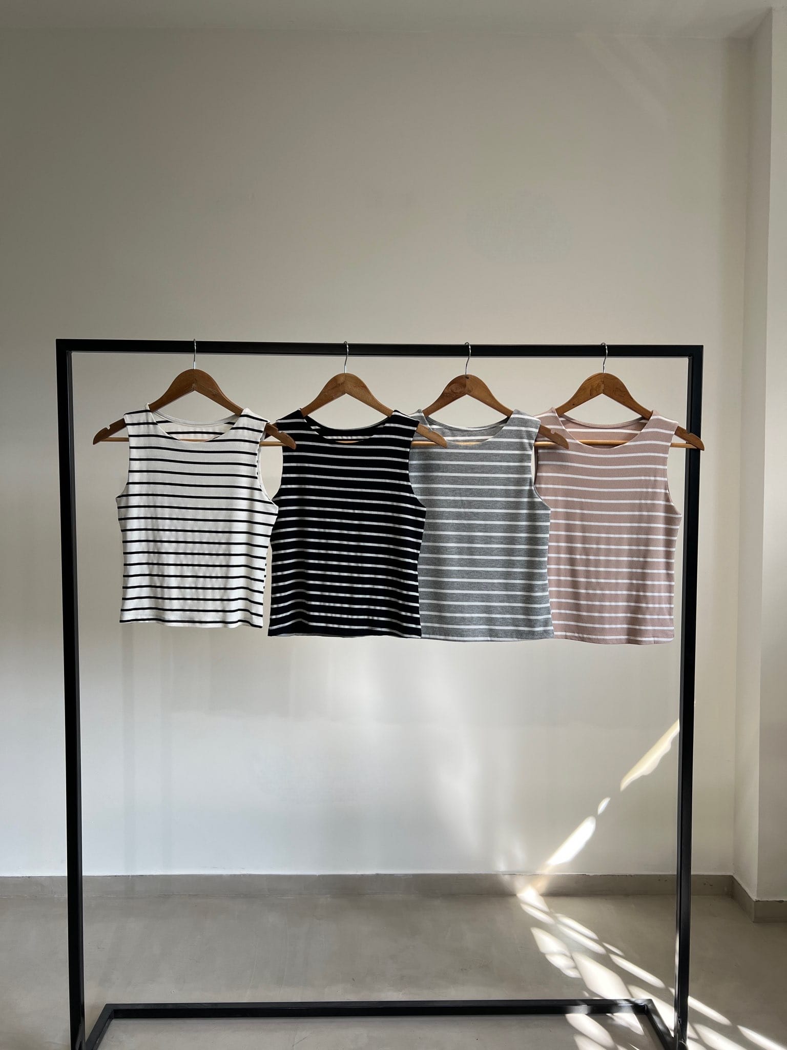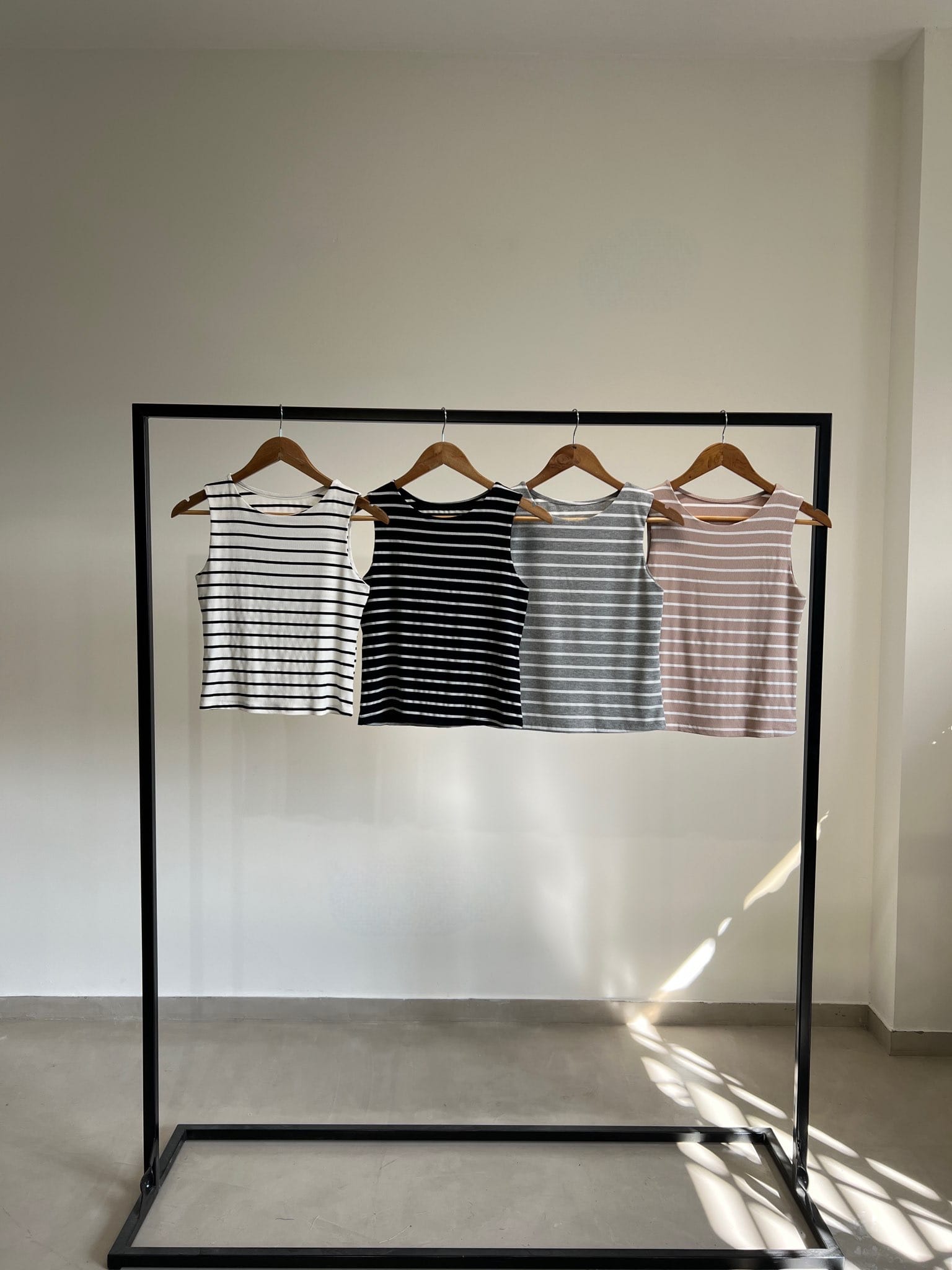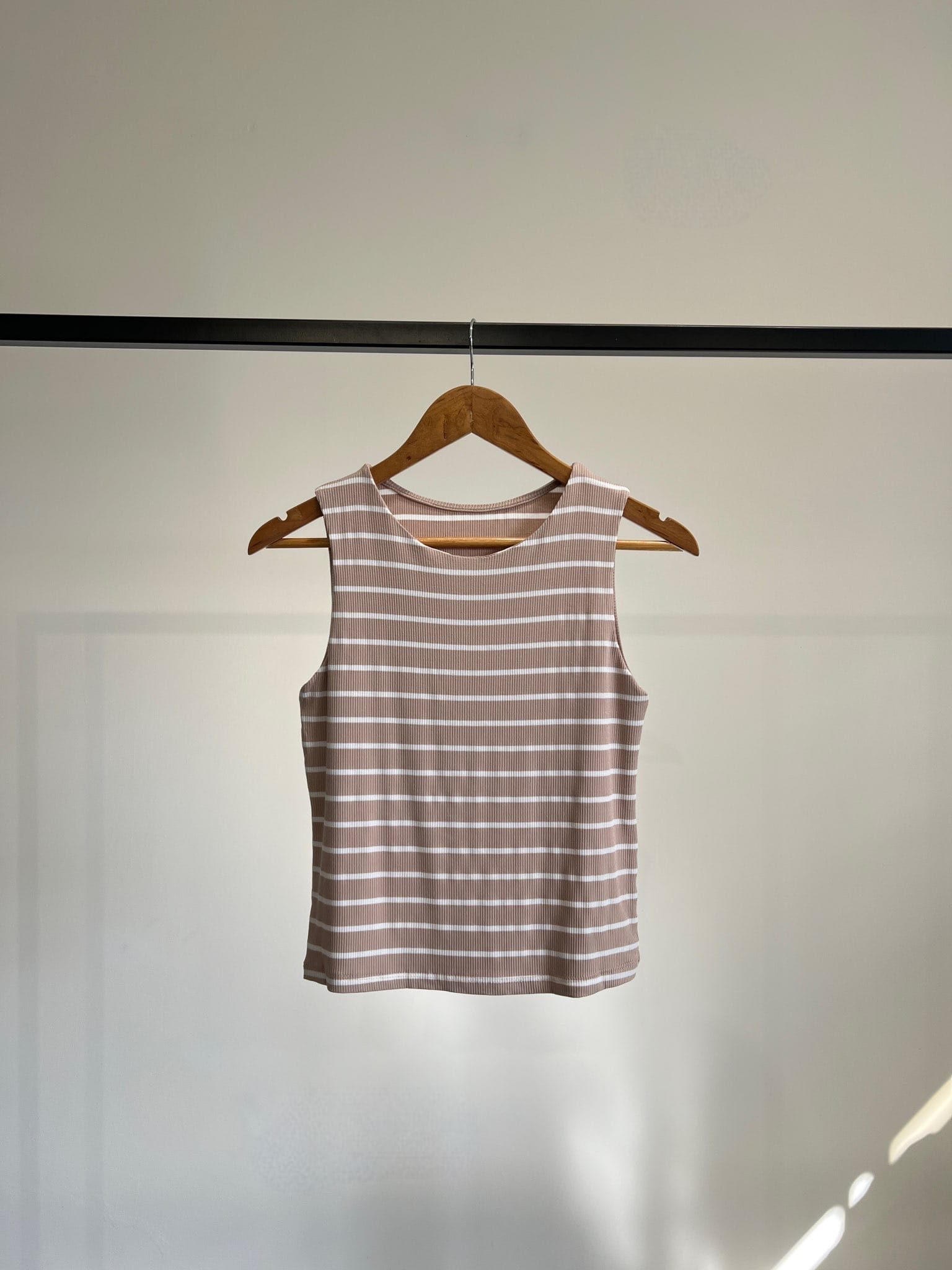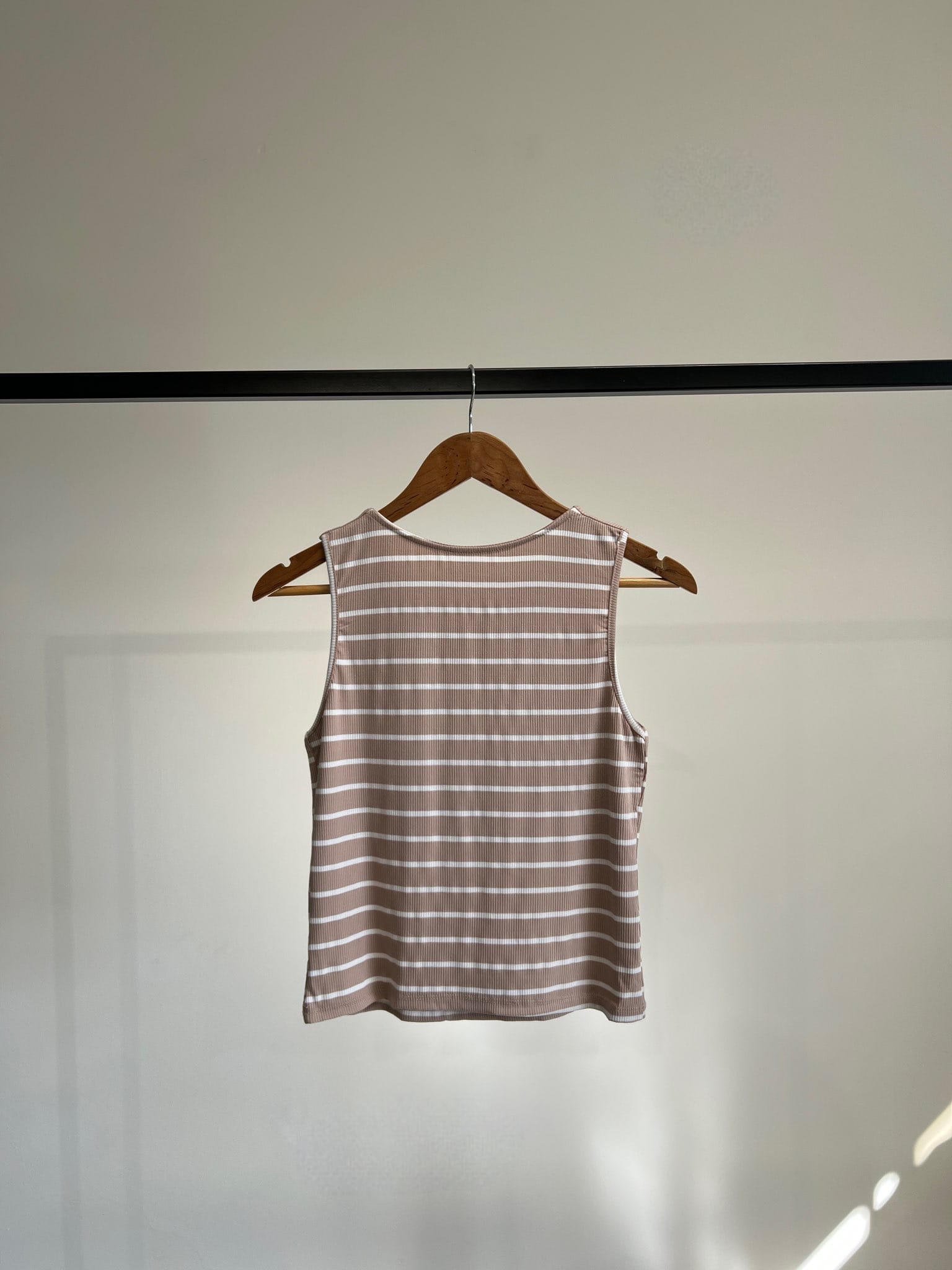 Musculosa básica con cuello redondo confeccionada en morley rayado