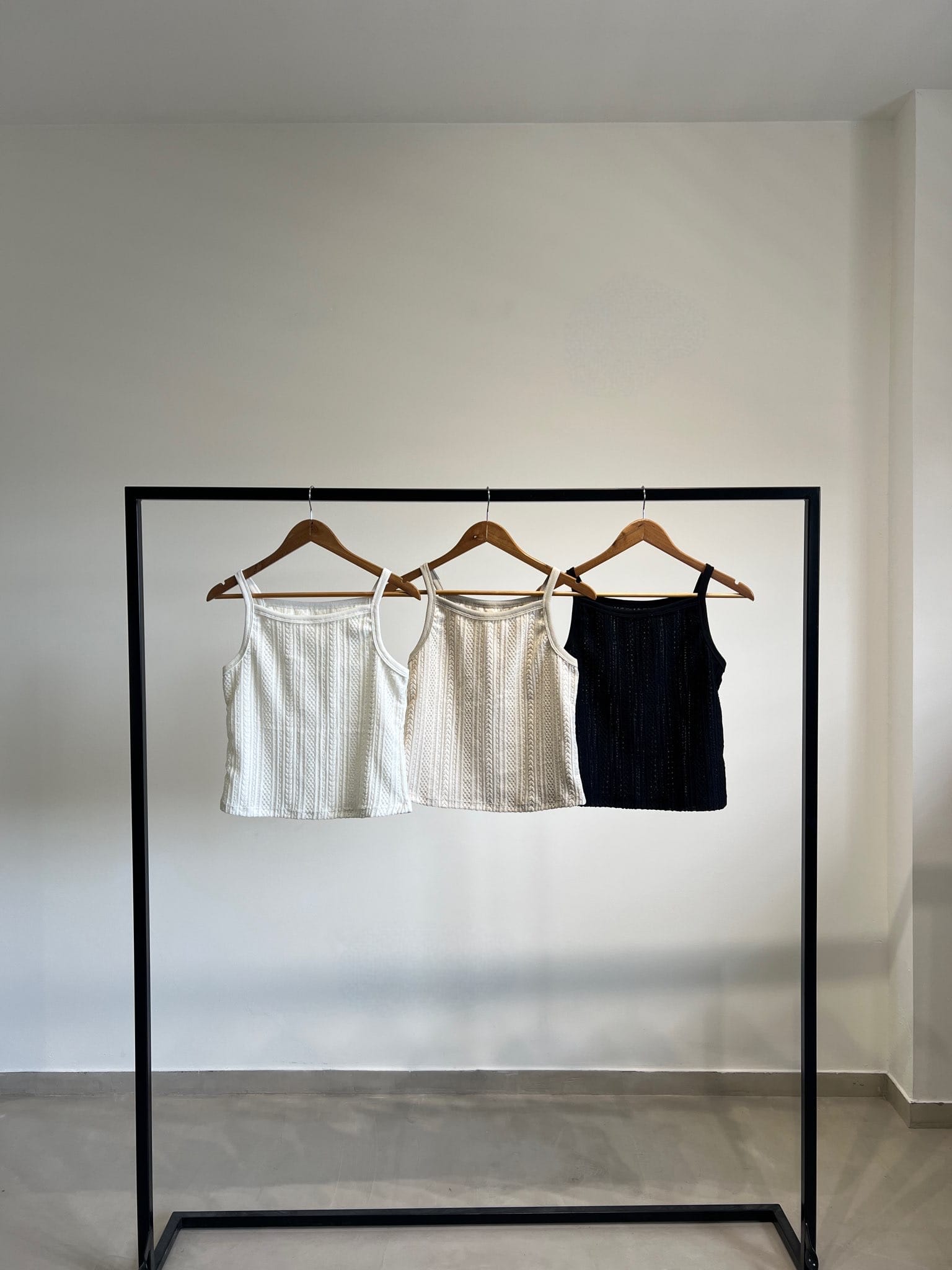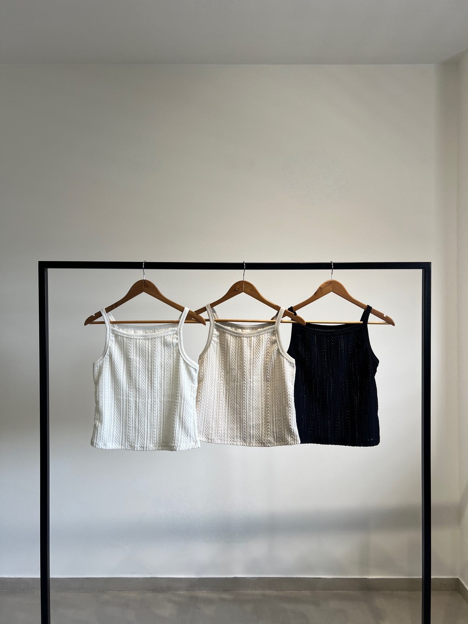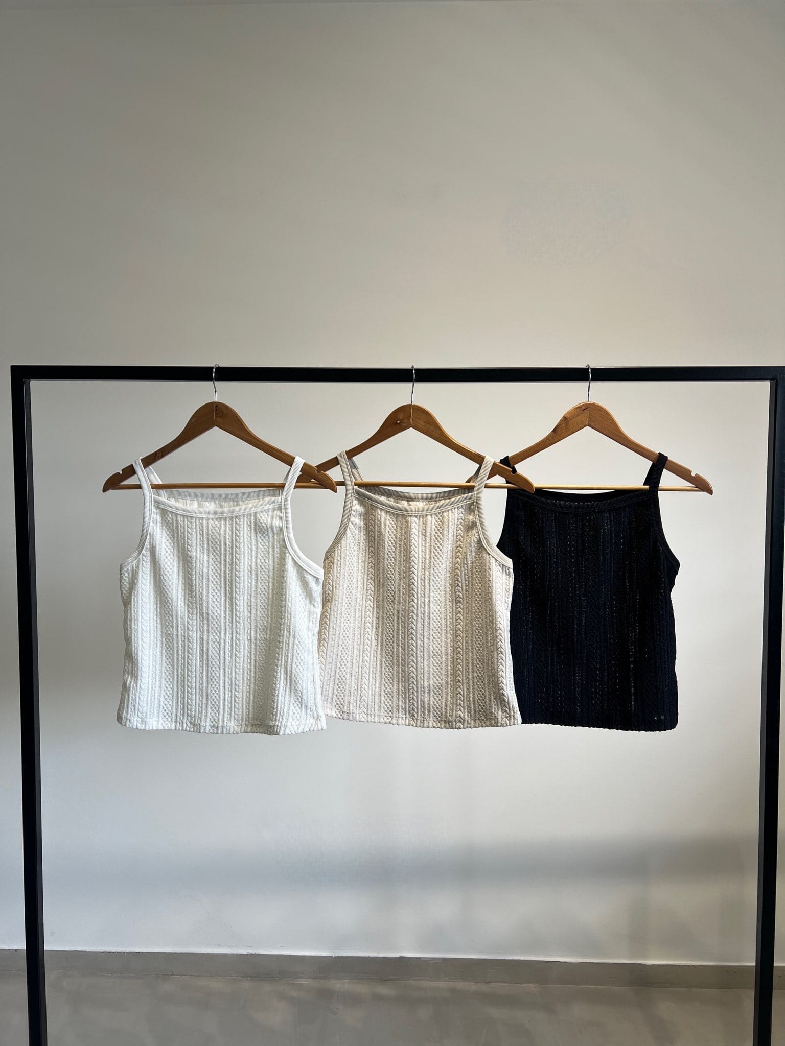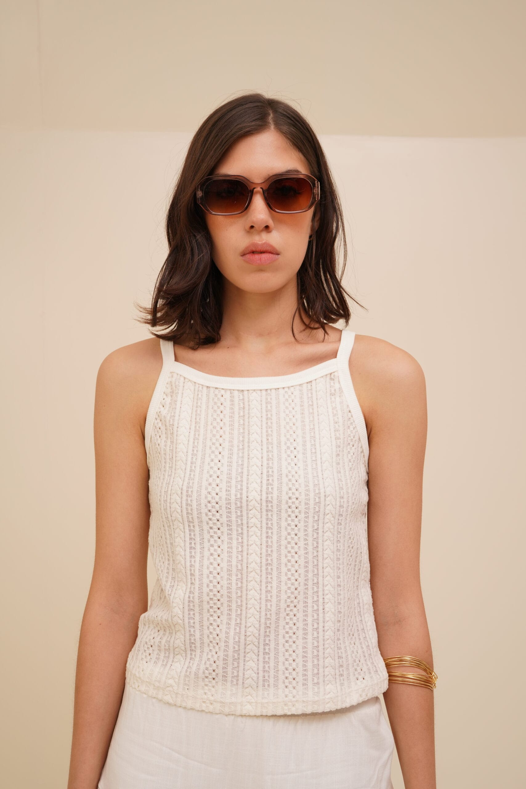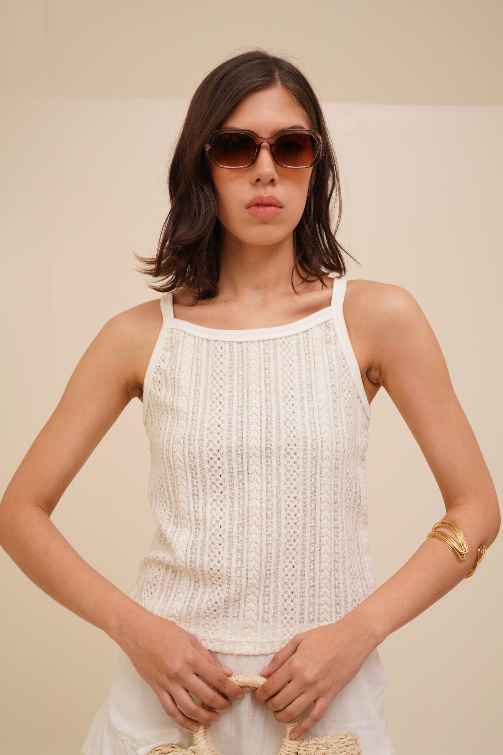 Musculosa básica de cuello redondo y breteles finitos confeccionada en broderie