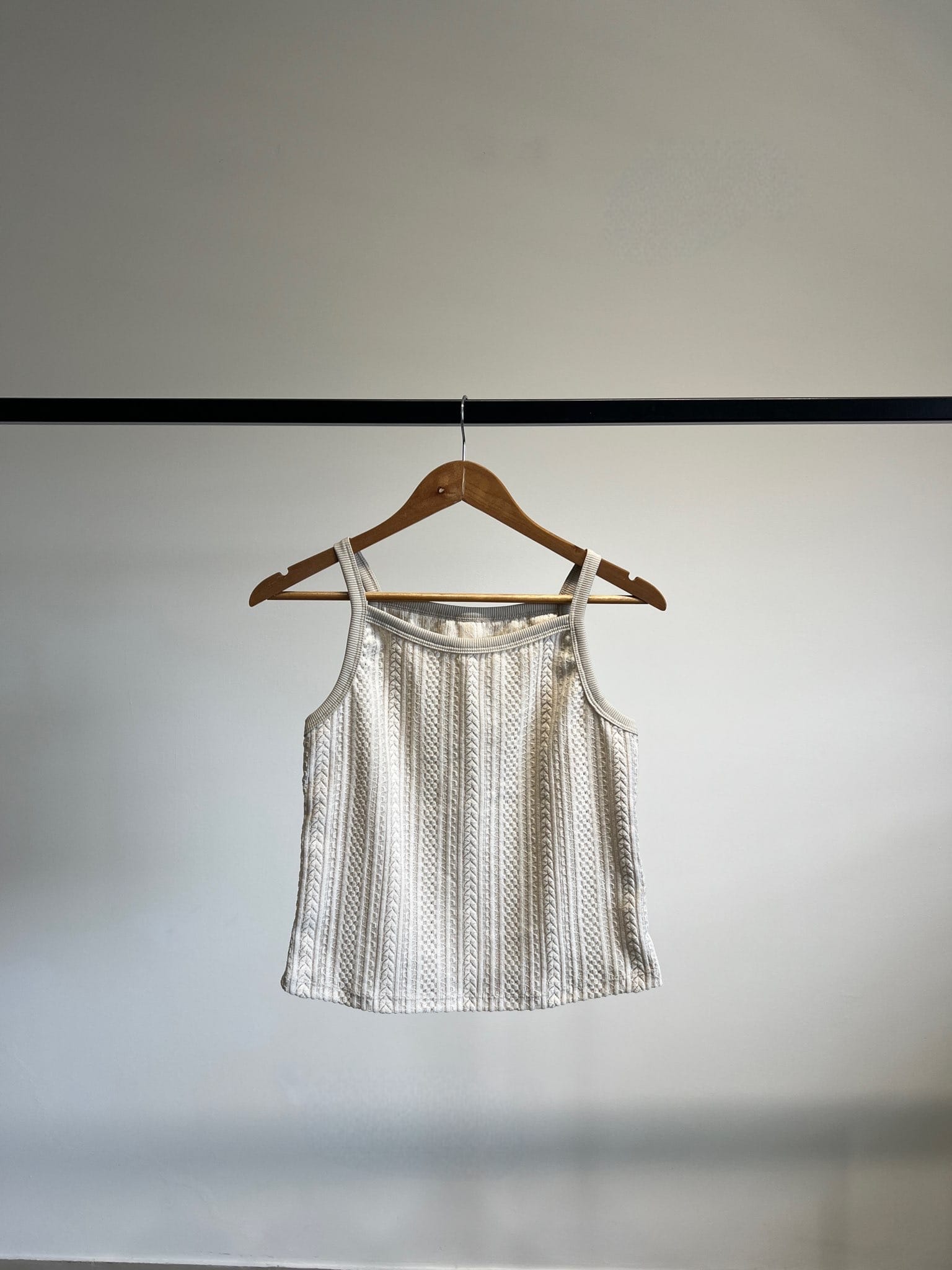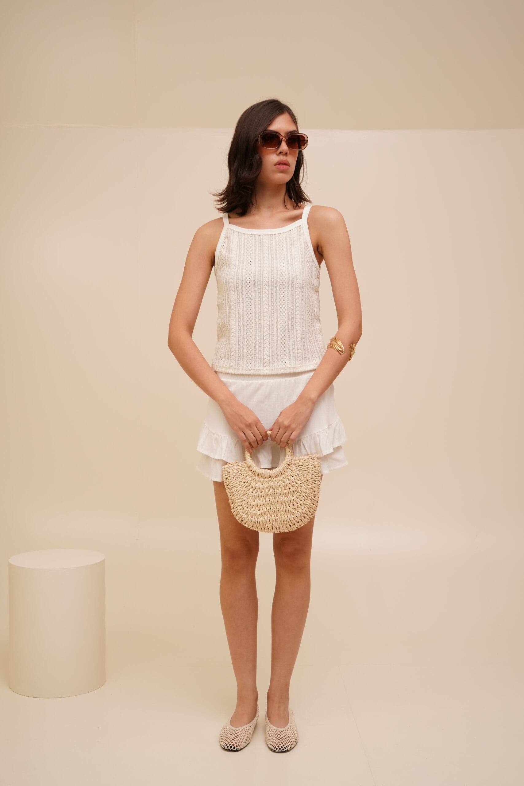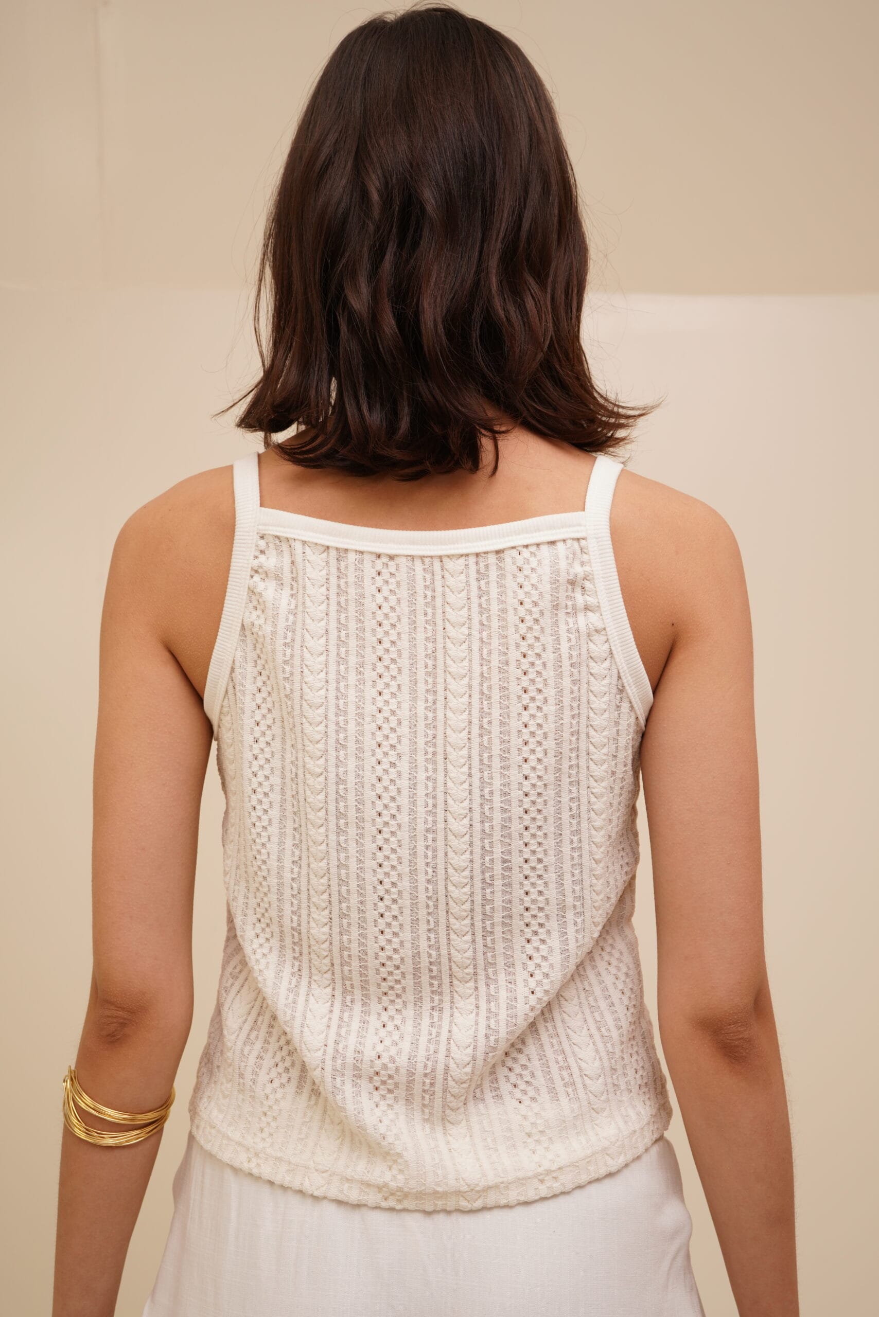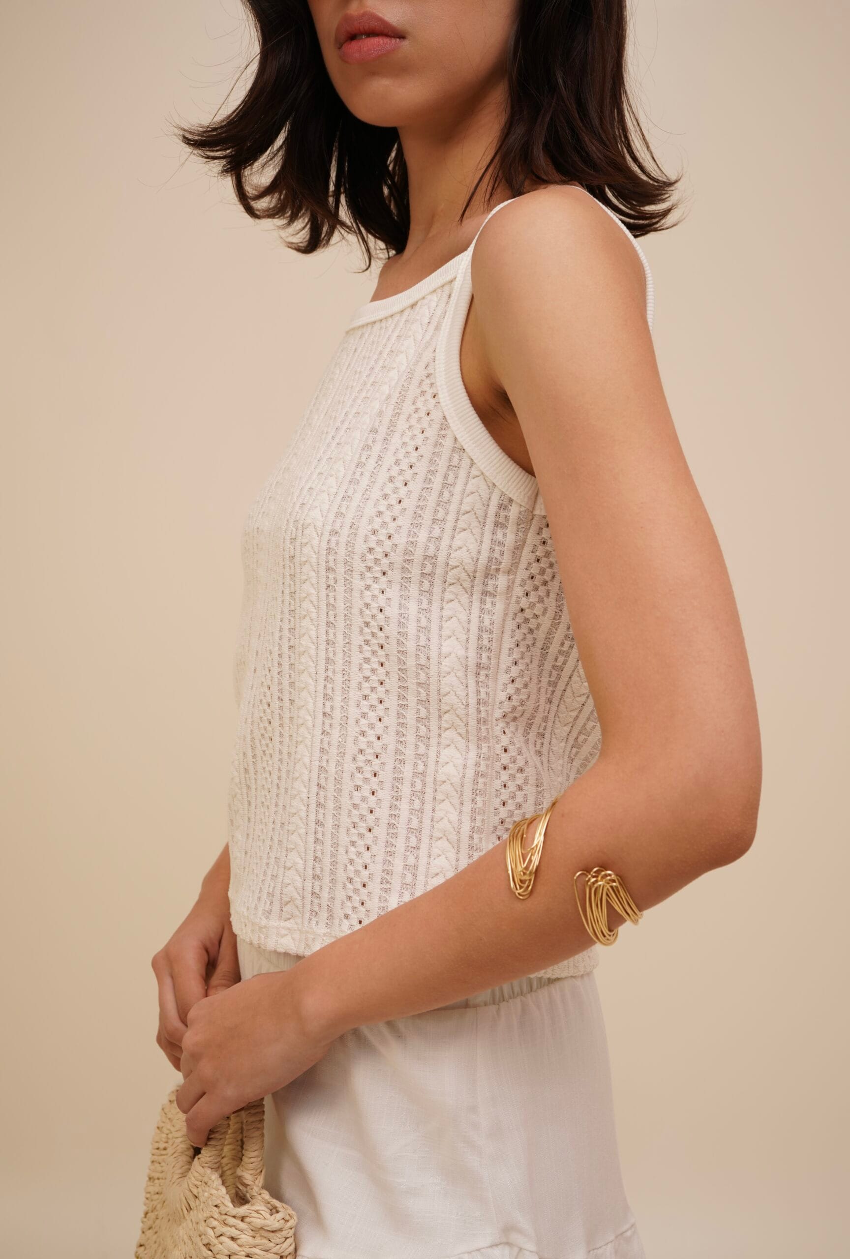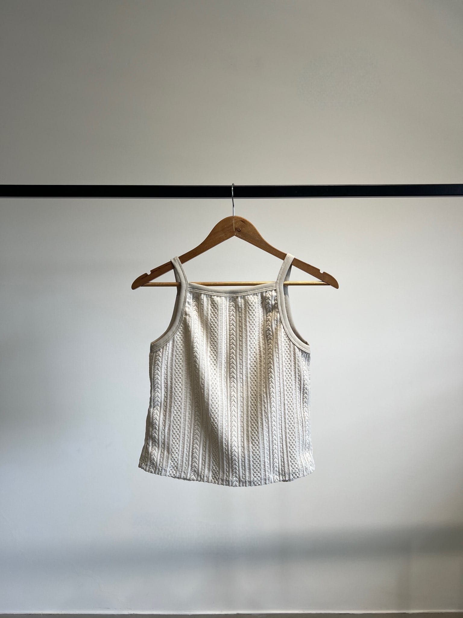 Musculosa básica de cuello redondo y breteles finitos confeccionada en broderie
