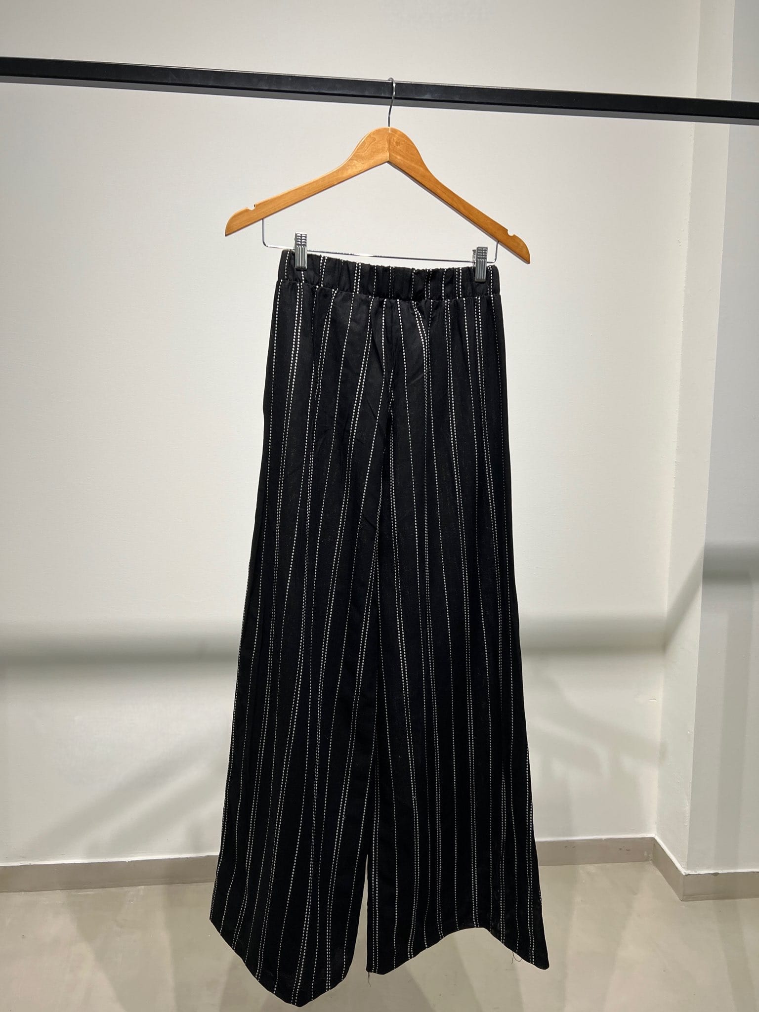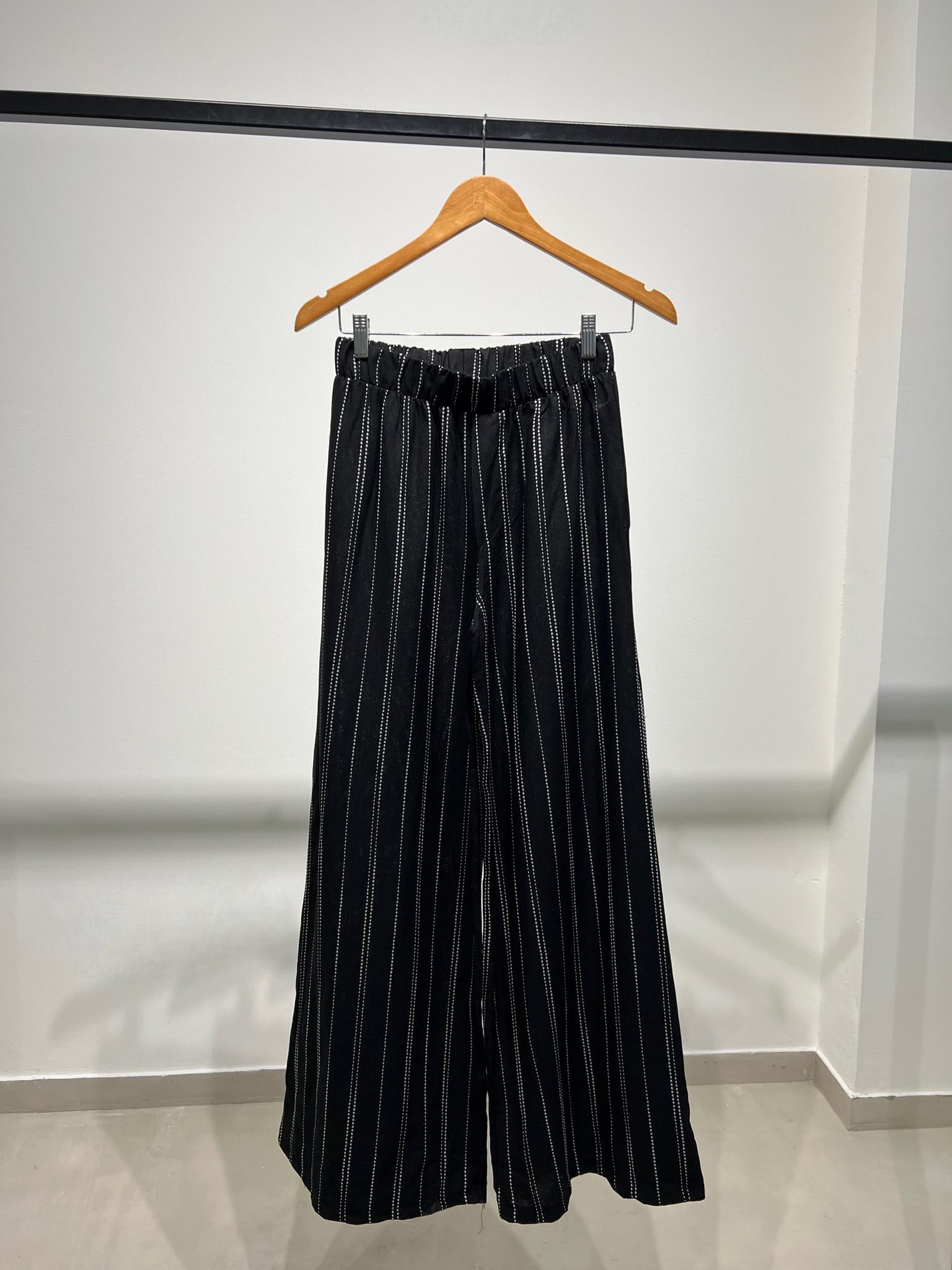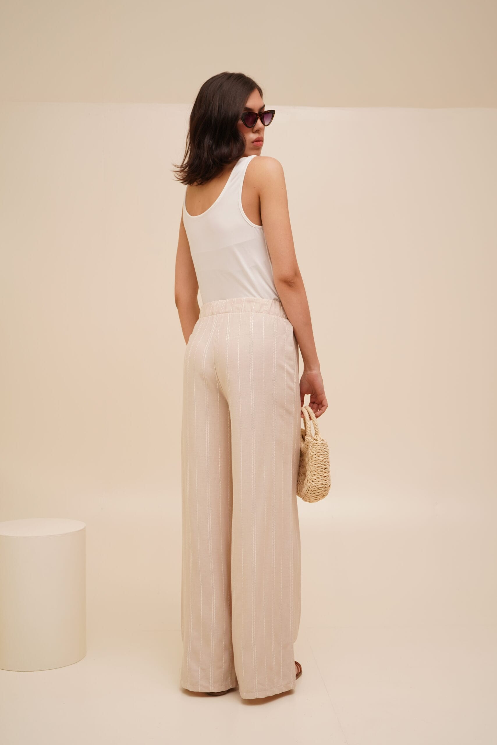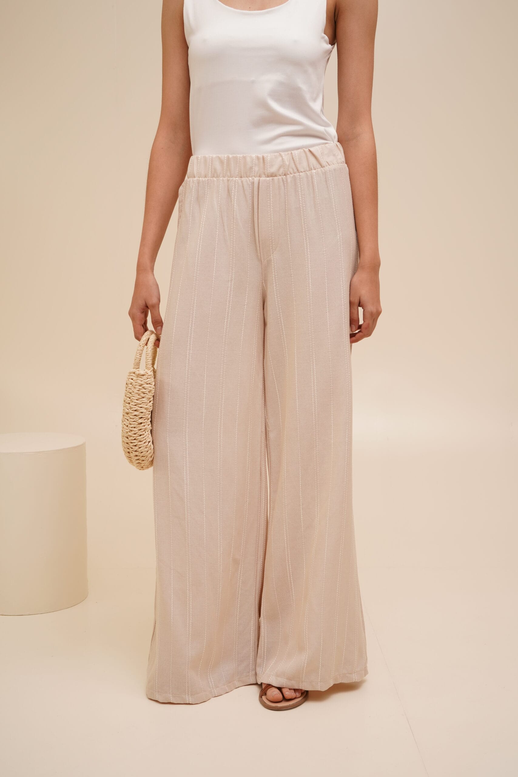 Pantalón tipo palazzo con elástico confeccionado en lino bordado