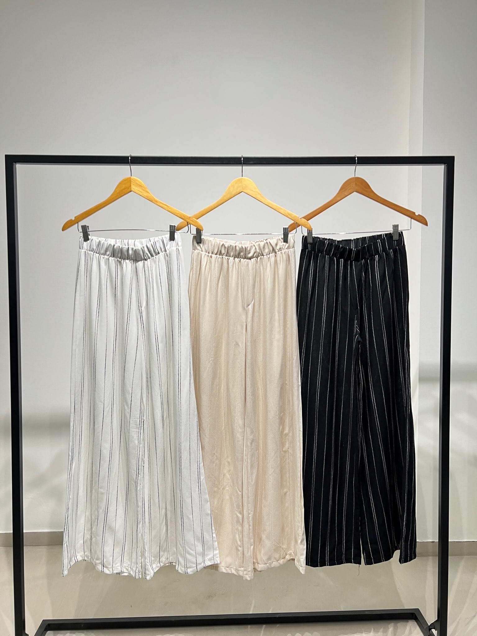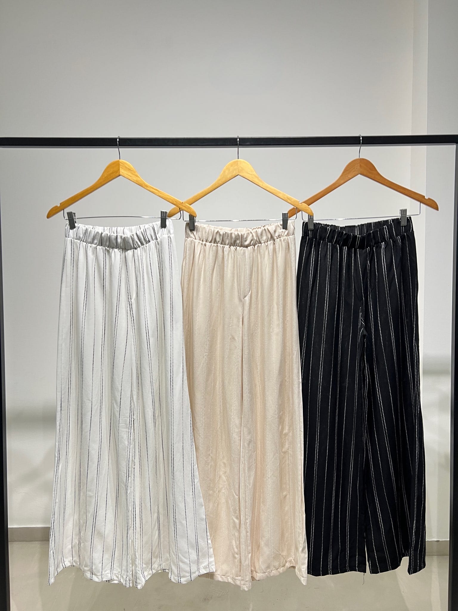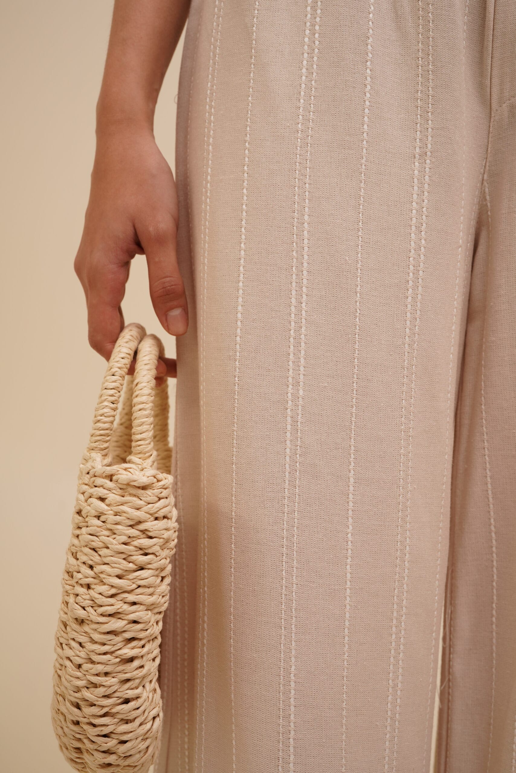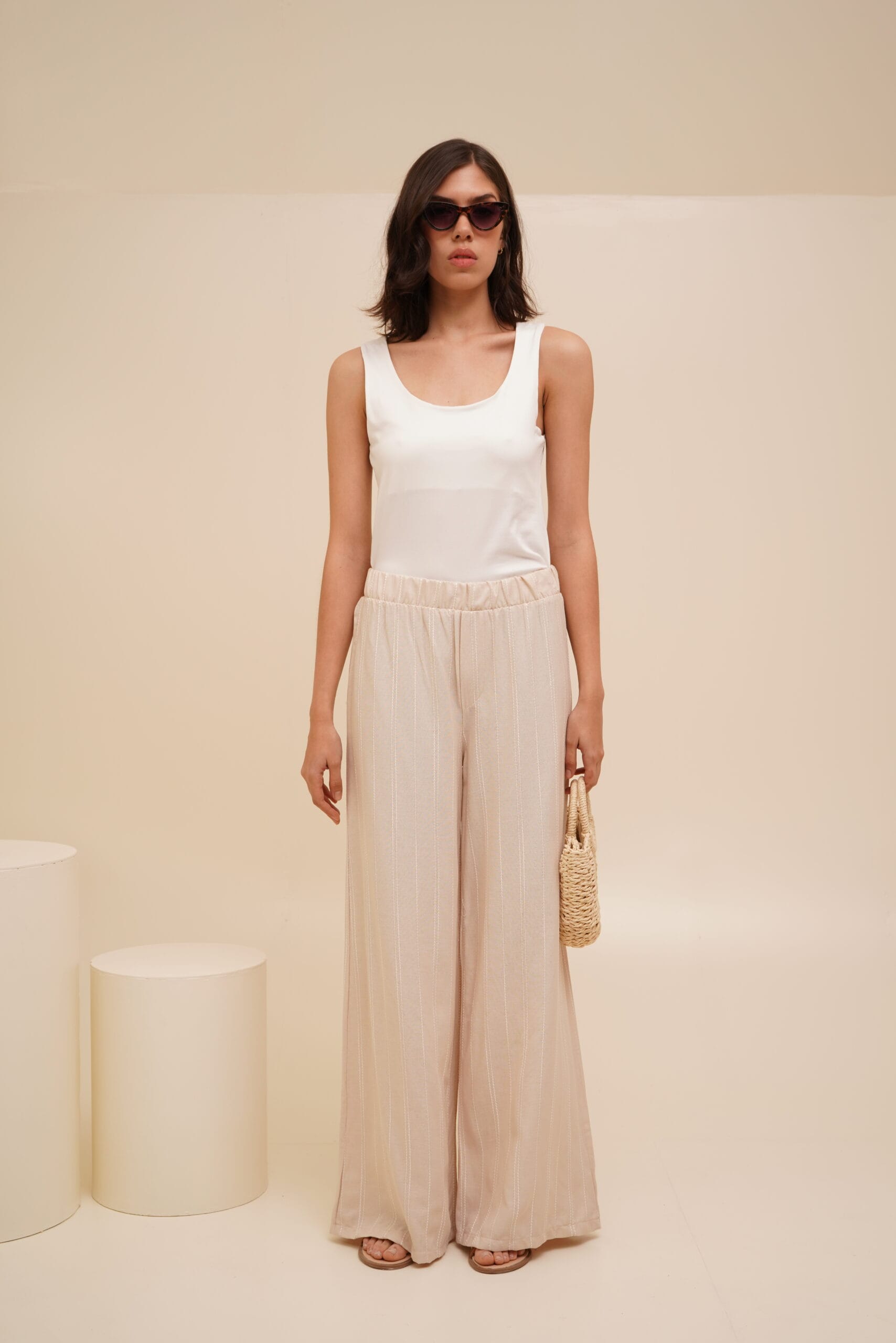 Pantalón tipo palazzo con elástico confeccionado en lino bordado