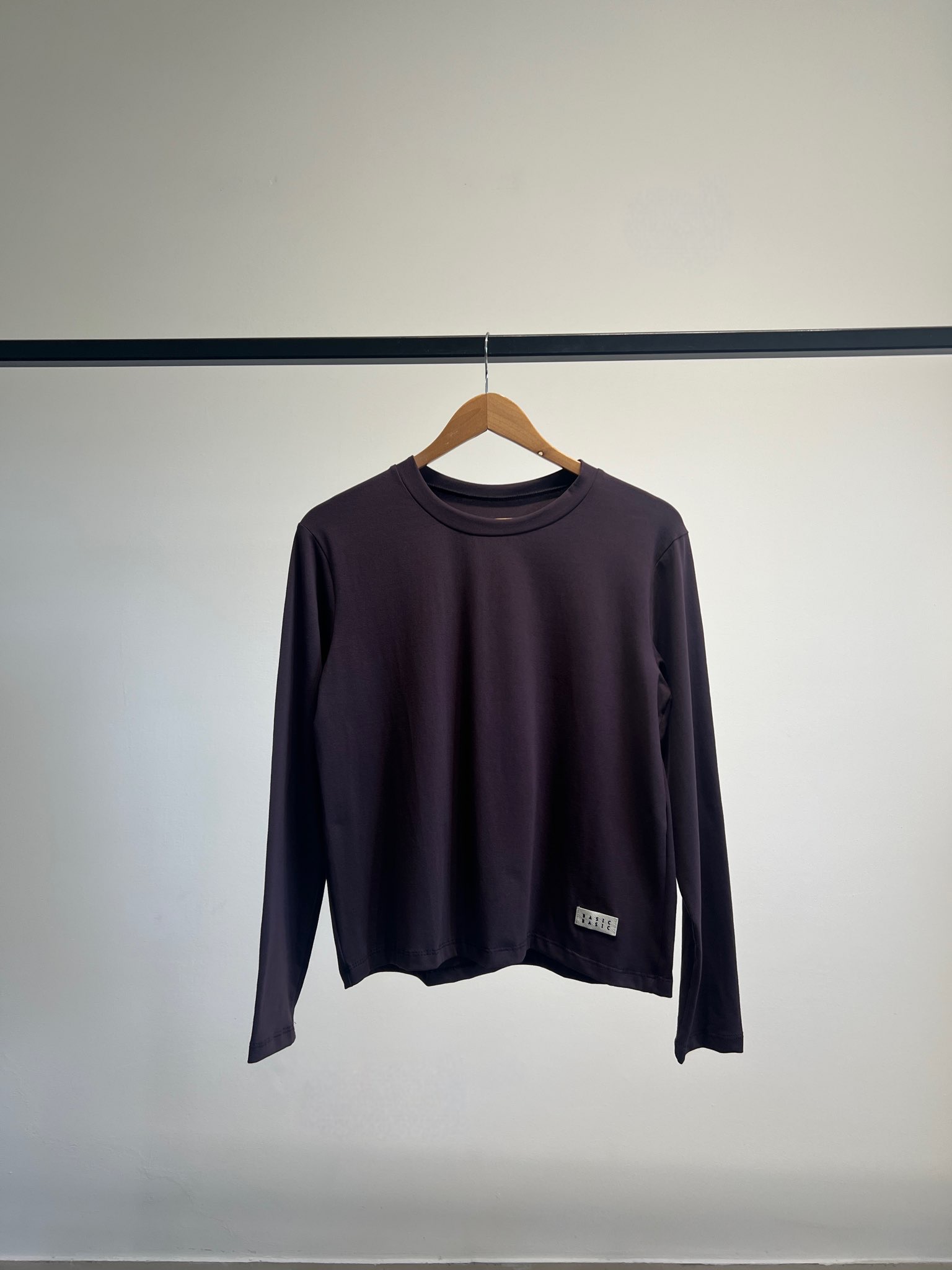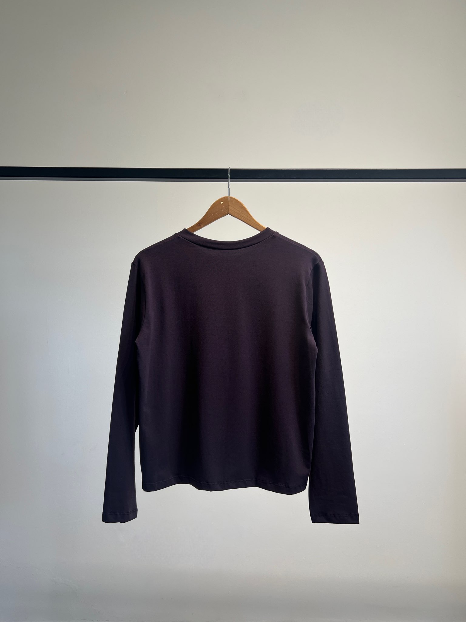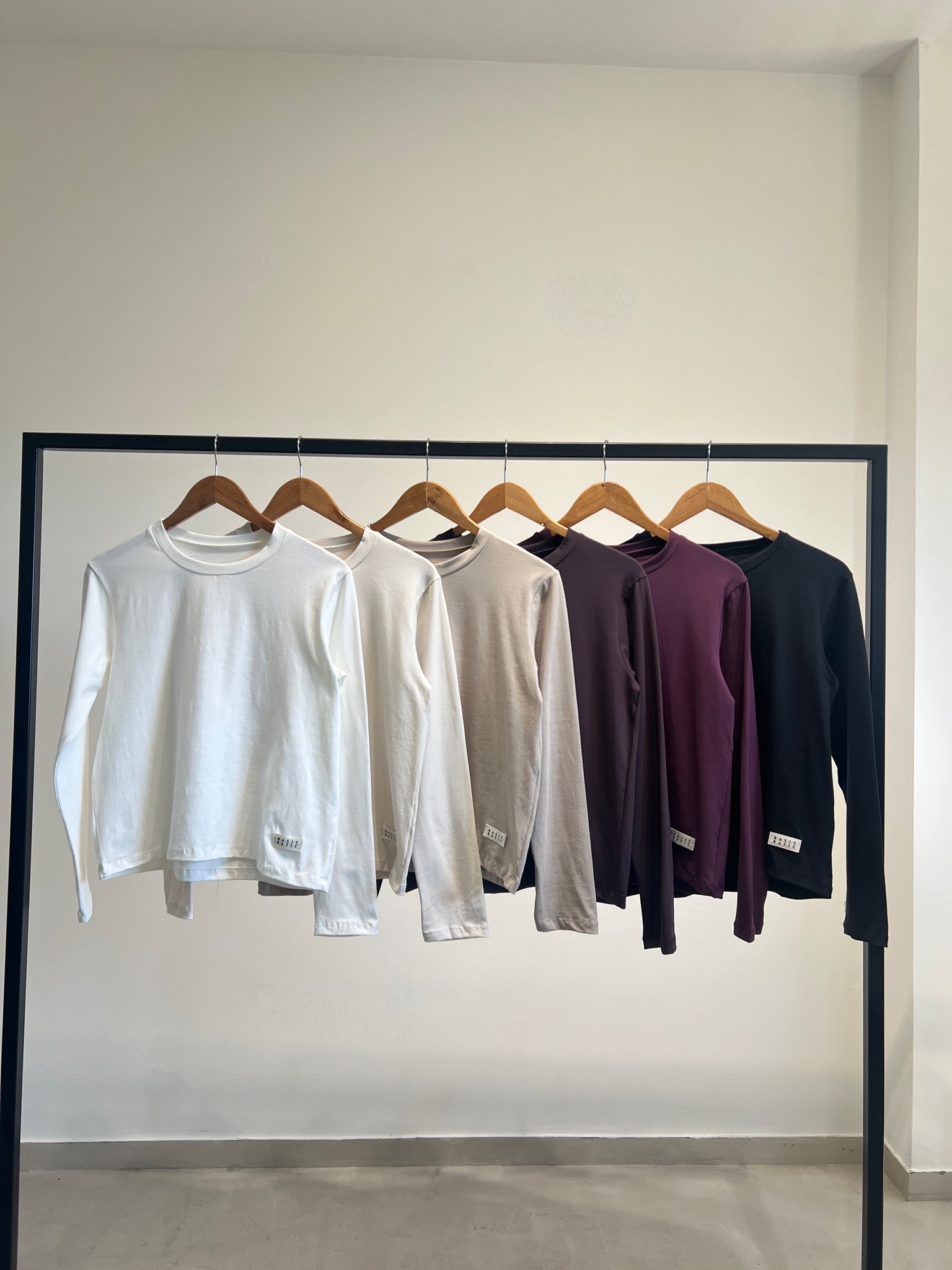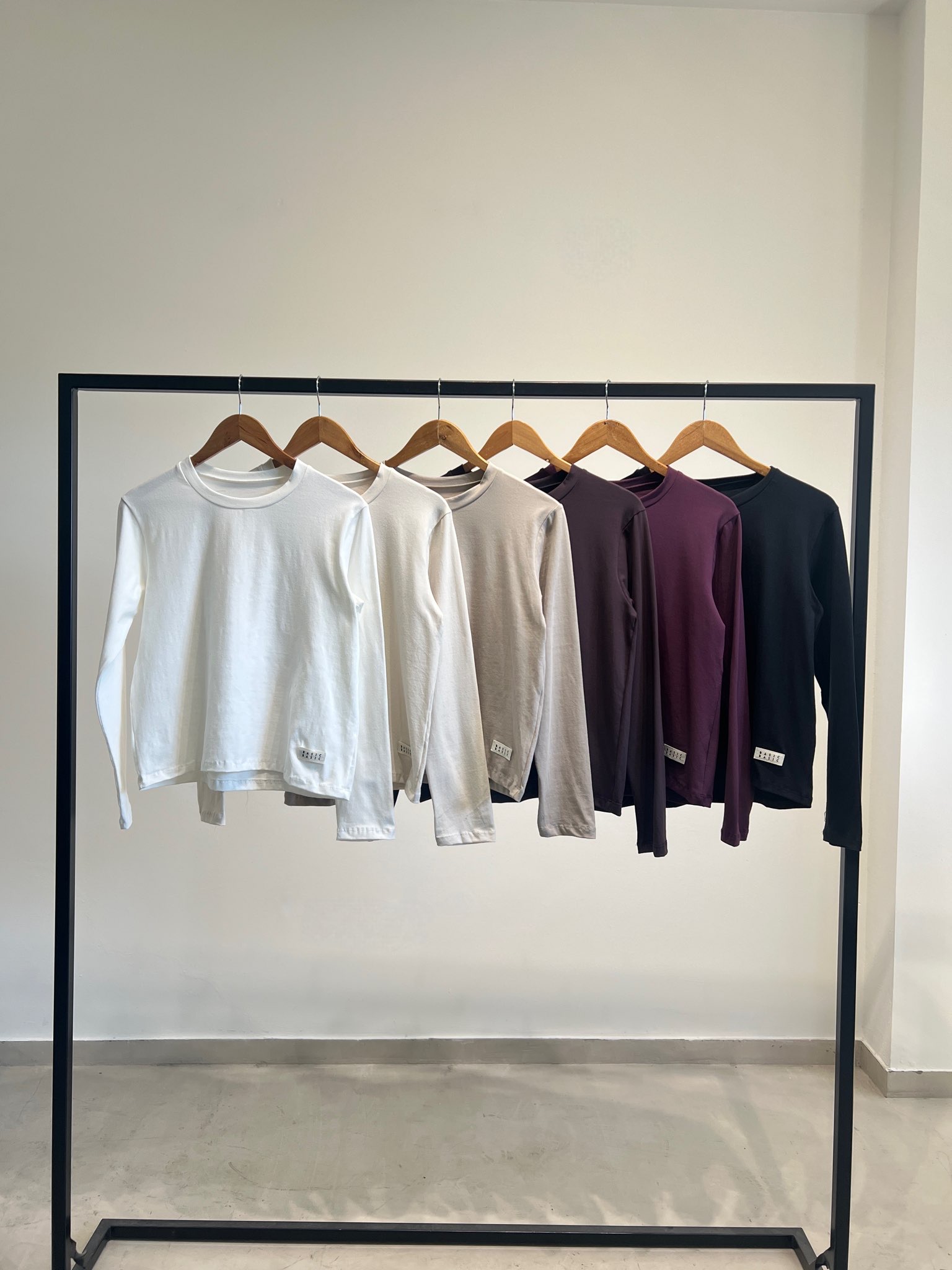 Remera básica mangas largas con detalle de aplique en la parte lateral inferior