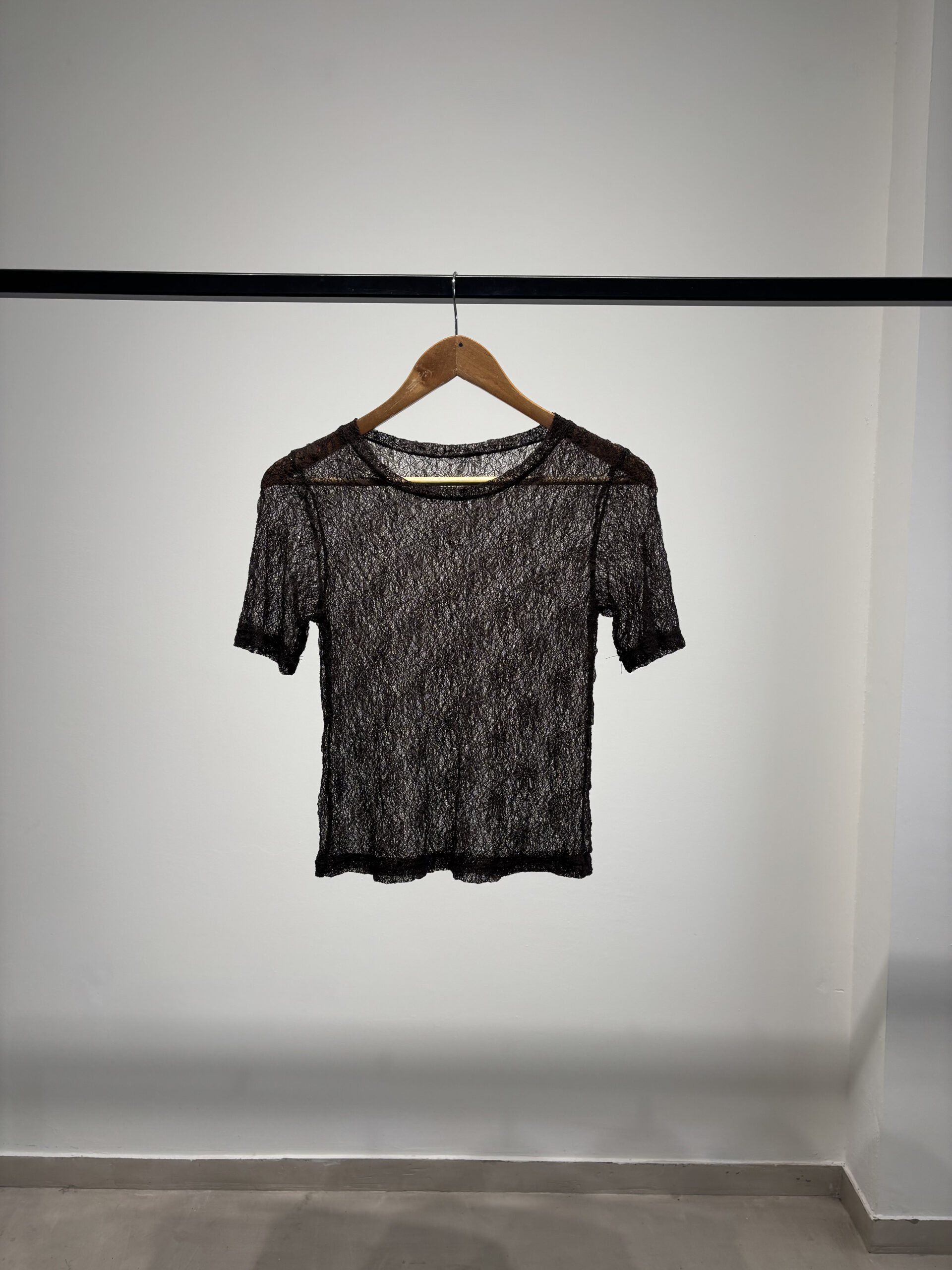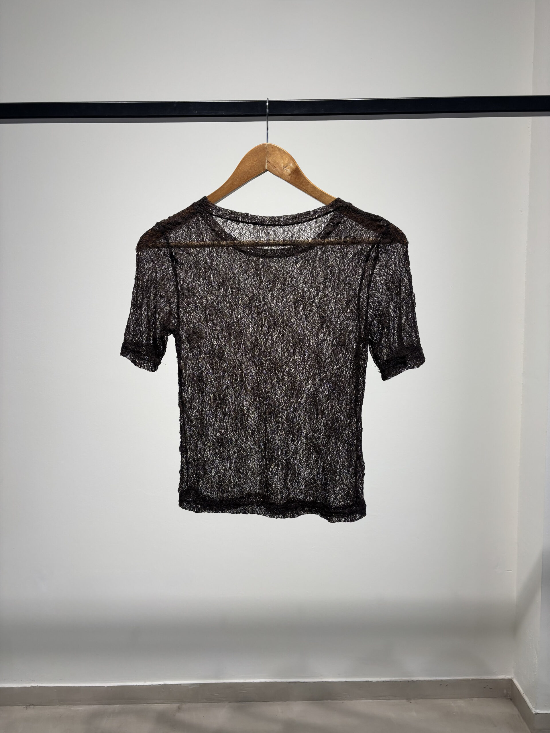Remera mangas cortas con cuello media polera confeccionada en encaje