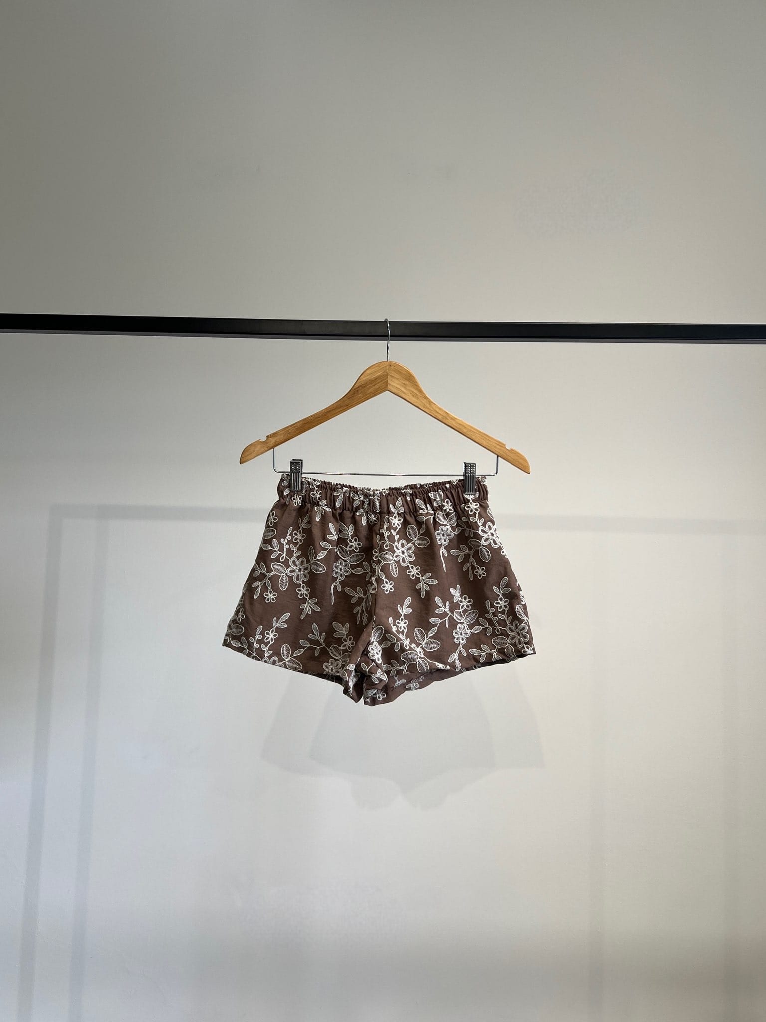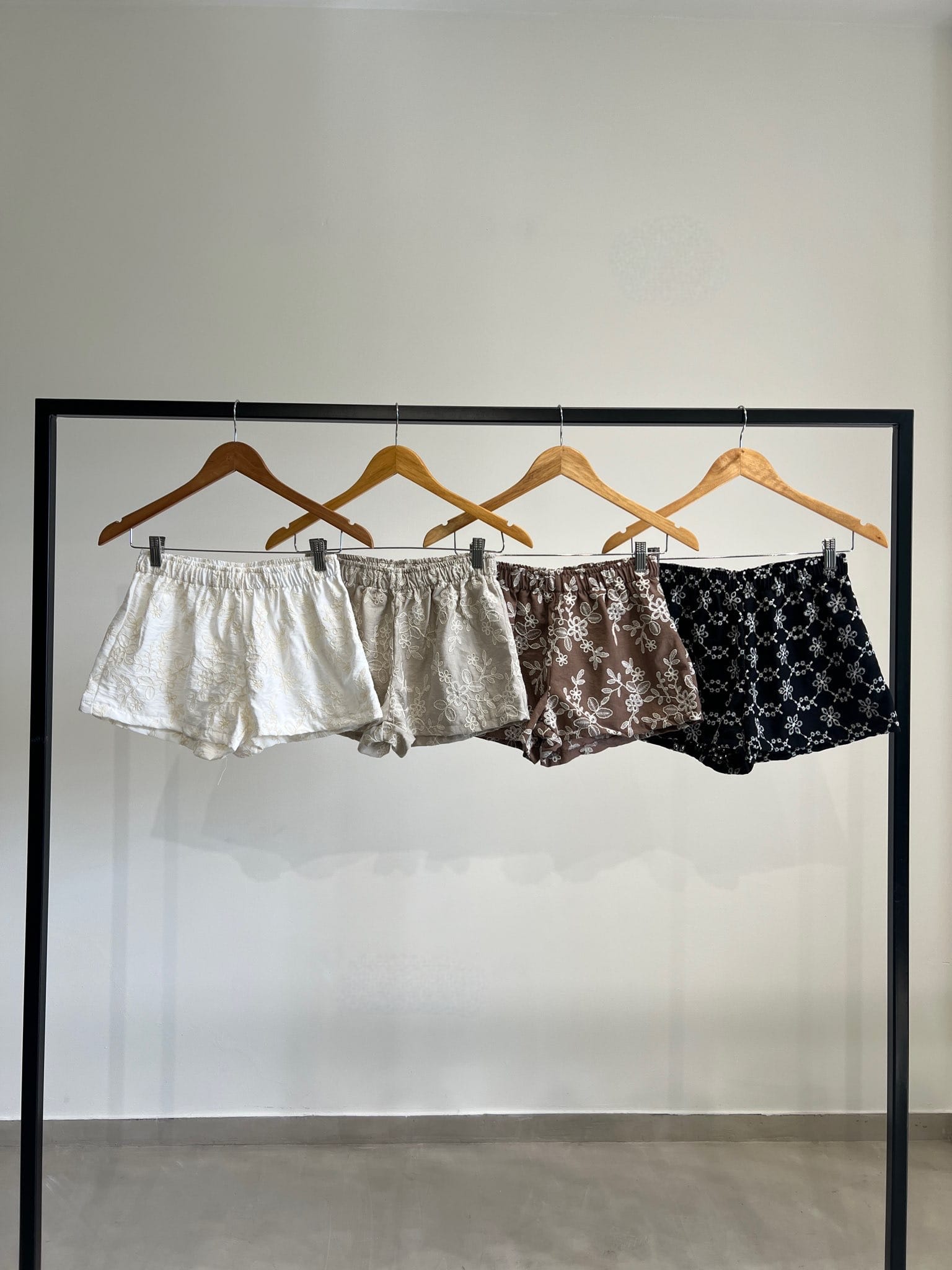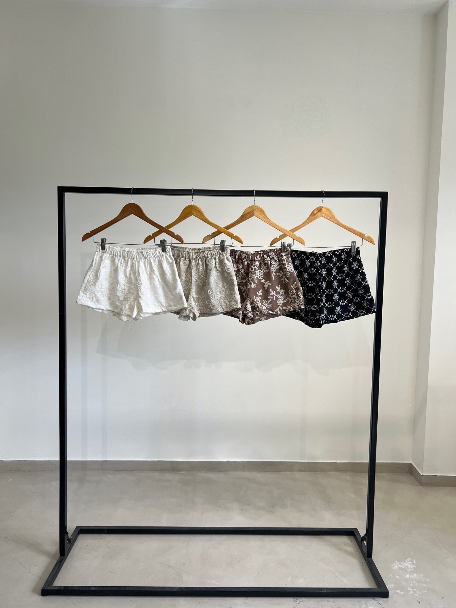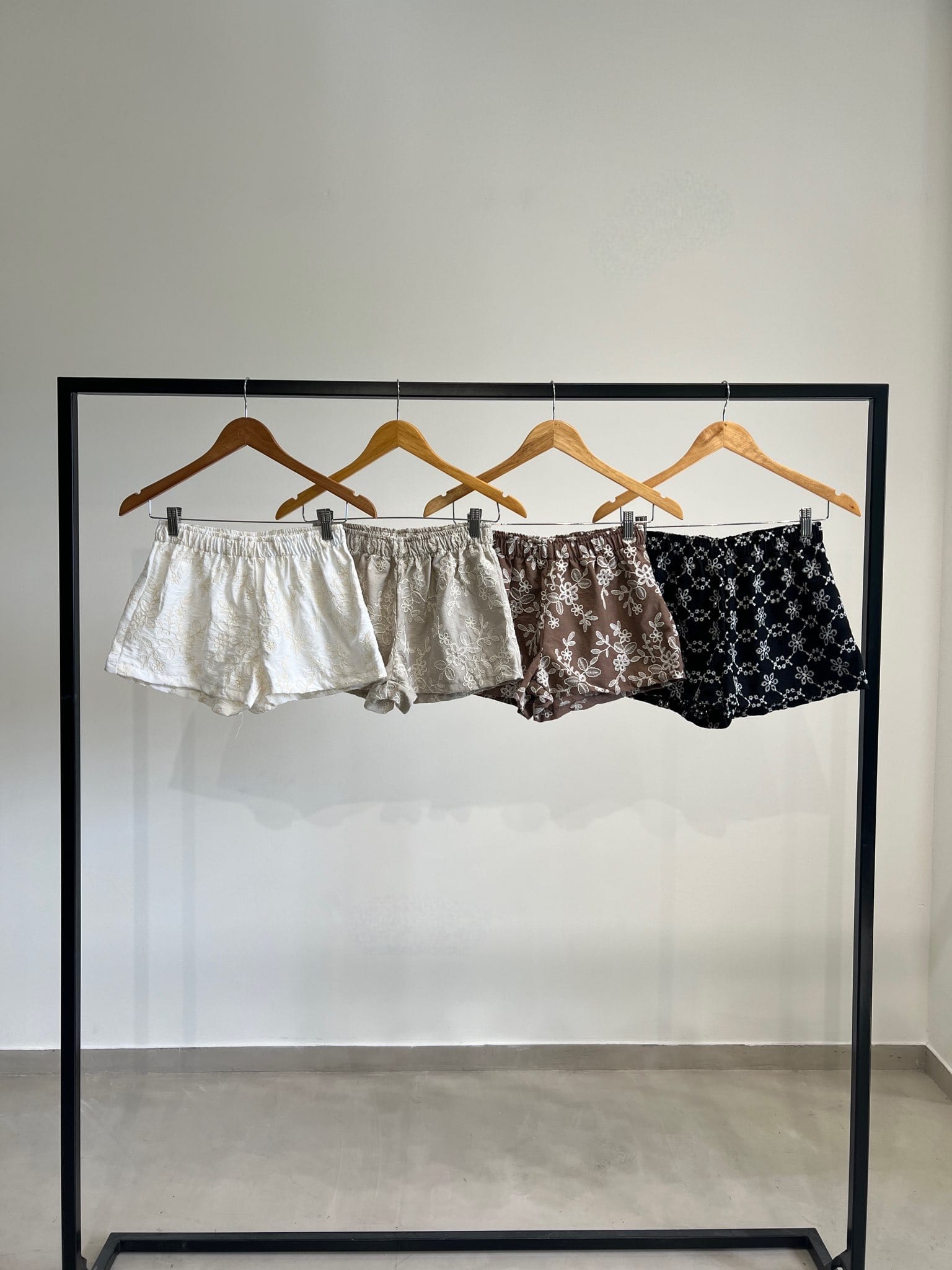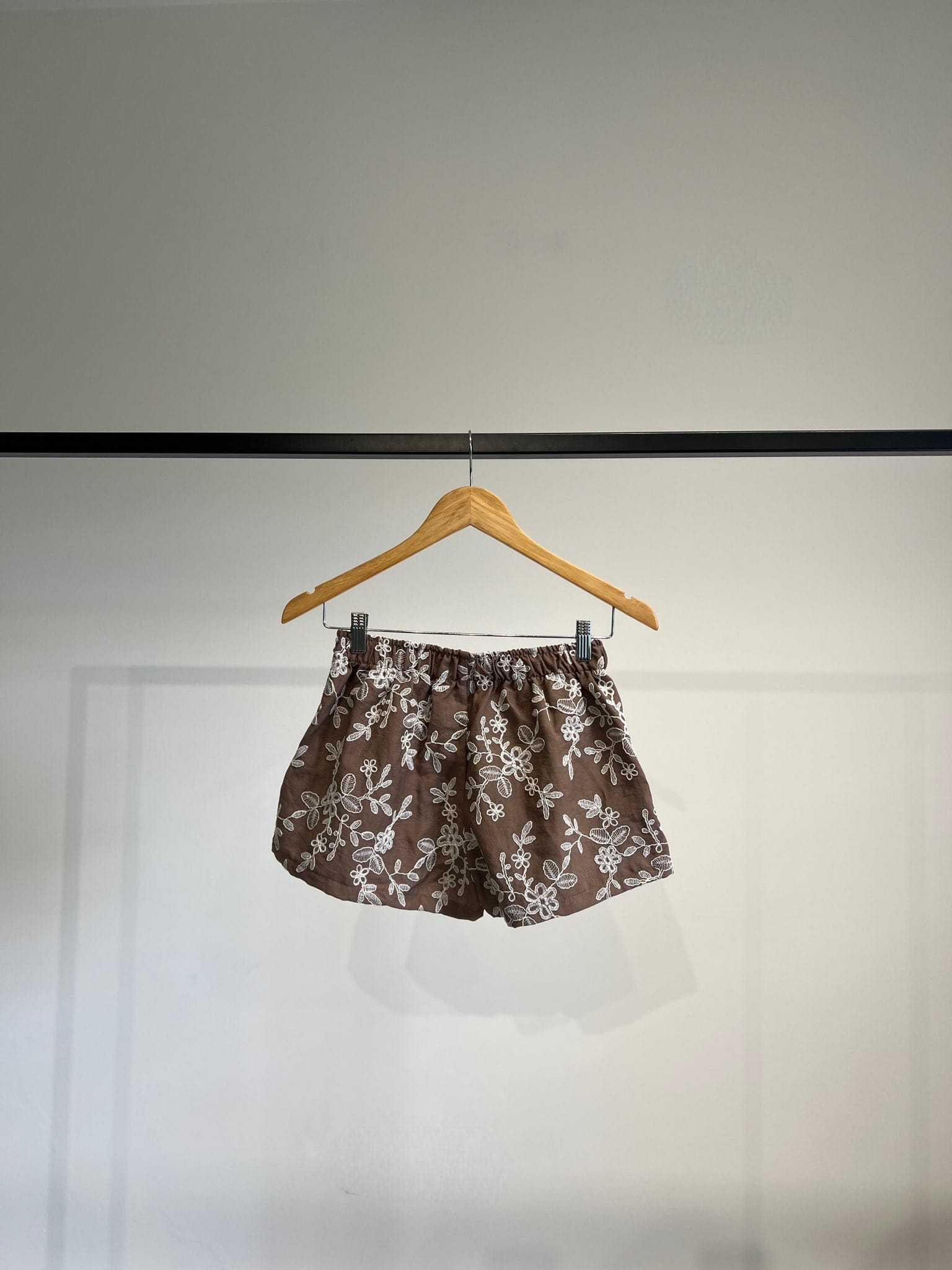 Short con elástico en la cintura confeccionado en simil lino bordado