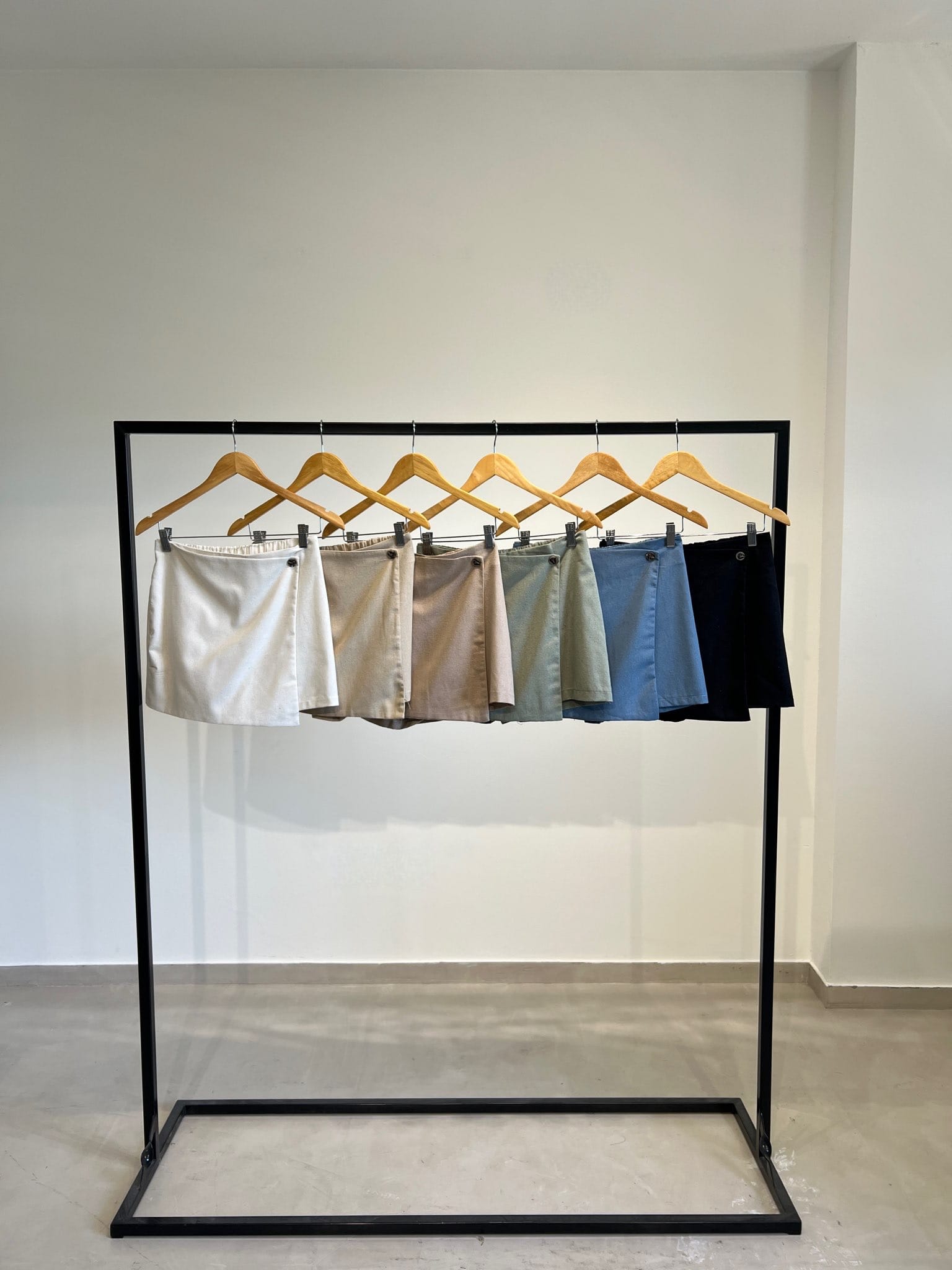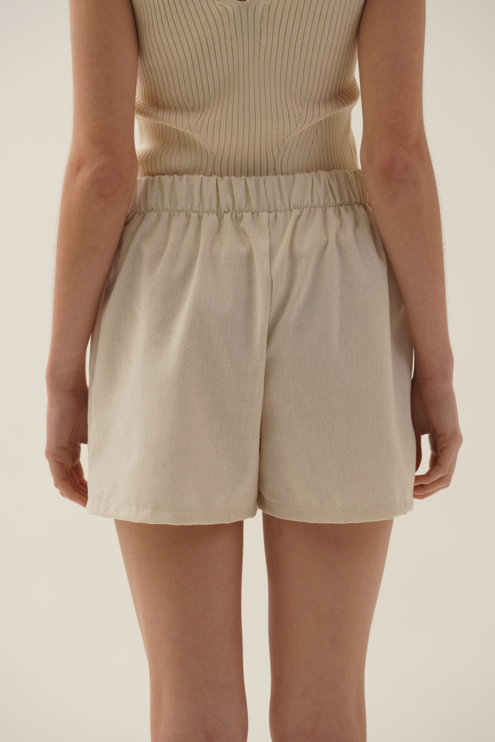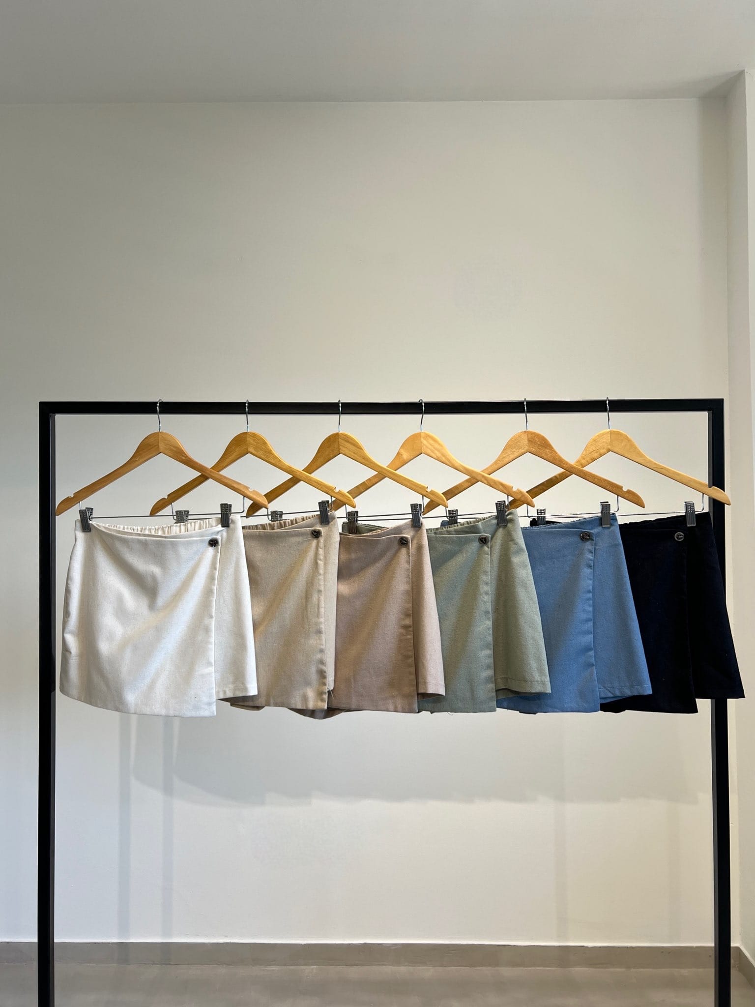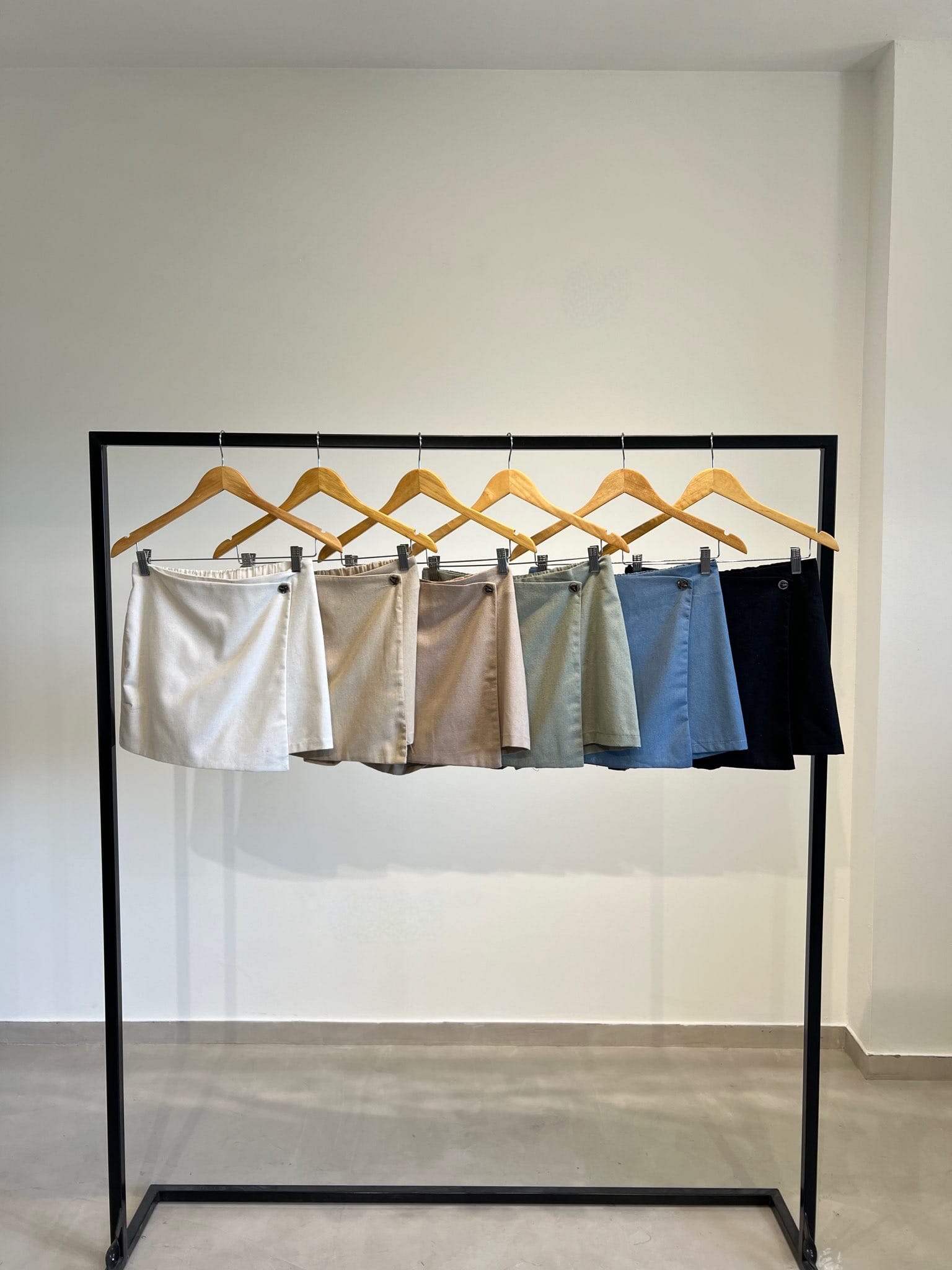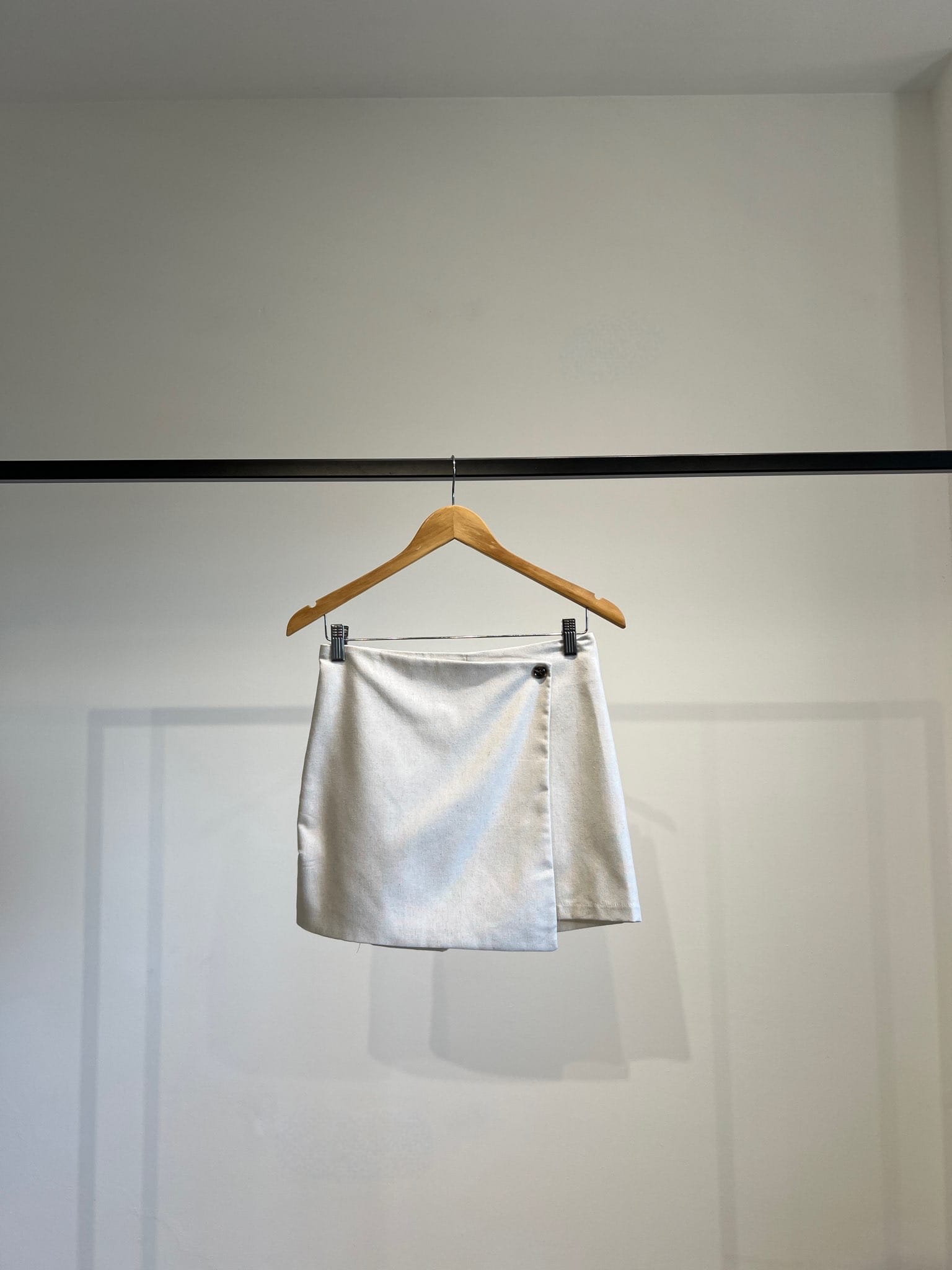 Short pollera sastrero con elástico en la cintura y botón decorativo