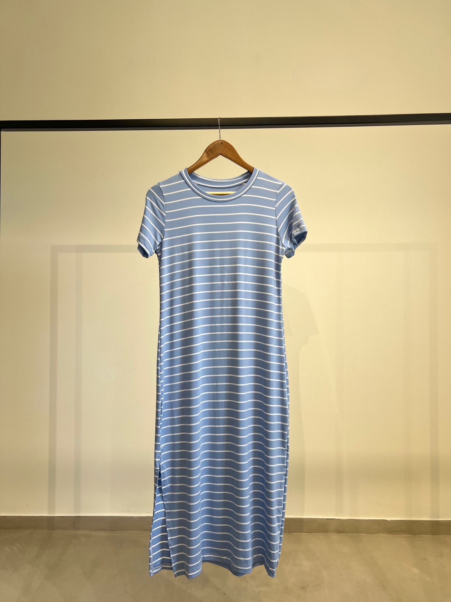 Vestido largo con mangas cortas y holgado confeccionada en algodón rayado